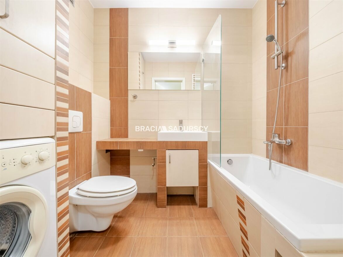 Wyposażenie łazienki: WC, wanna, umywalka, pralka |