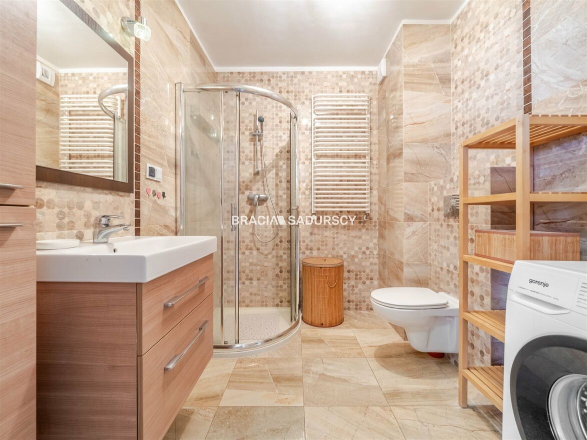 Wyposażenie łazienki: WC, umywalka, pralka, lustro, kabina prysznicowa |