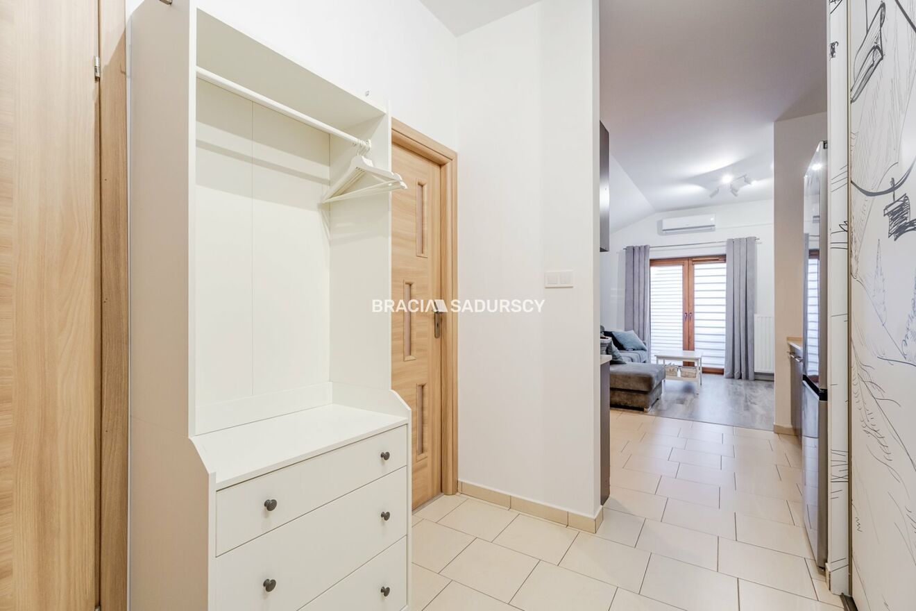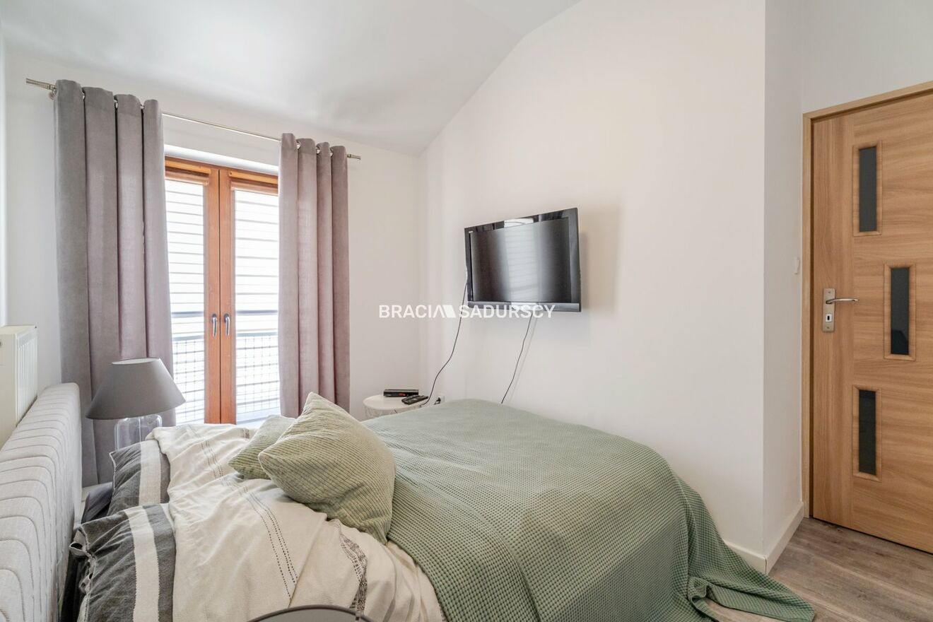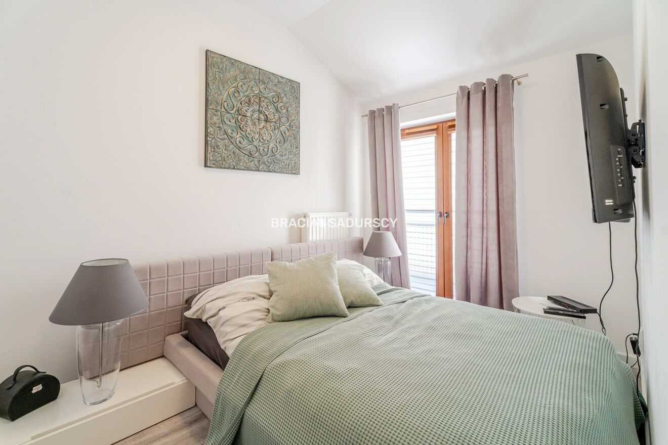 W skład nieruchomości wchodzi: przestronny salon z aneksem kuchennym, niezależna jasna sypialnia, w pełni wyposażona łazienka, przedpokój z dużą szafą w zabudowie.