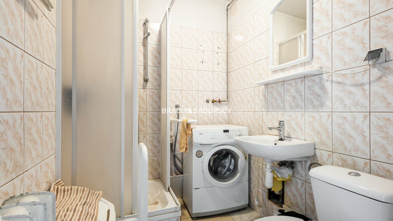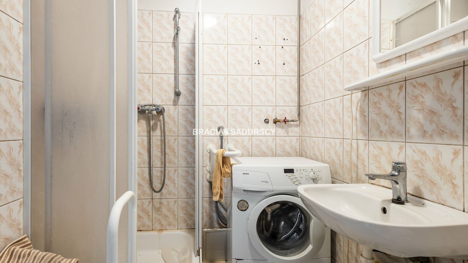 Wyposażenie łazienki: WC, pralka, lustro, kabina prysznicowa |