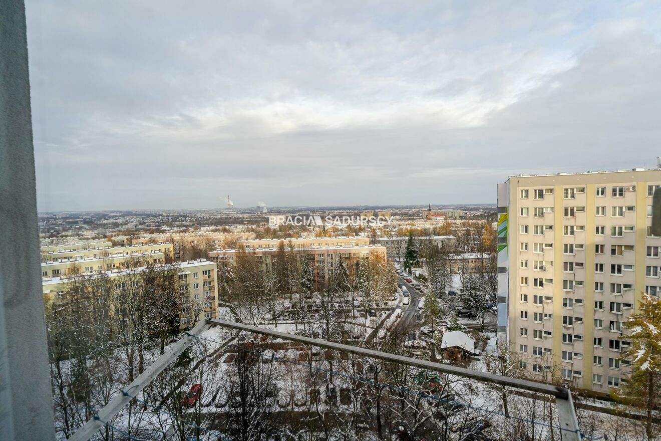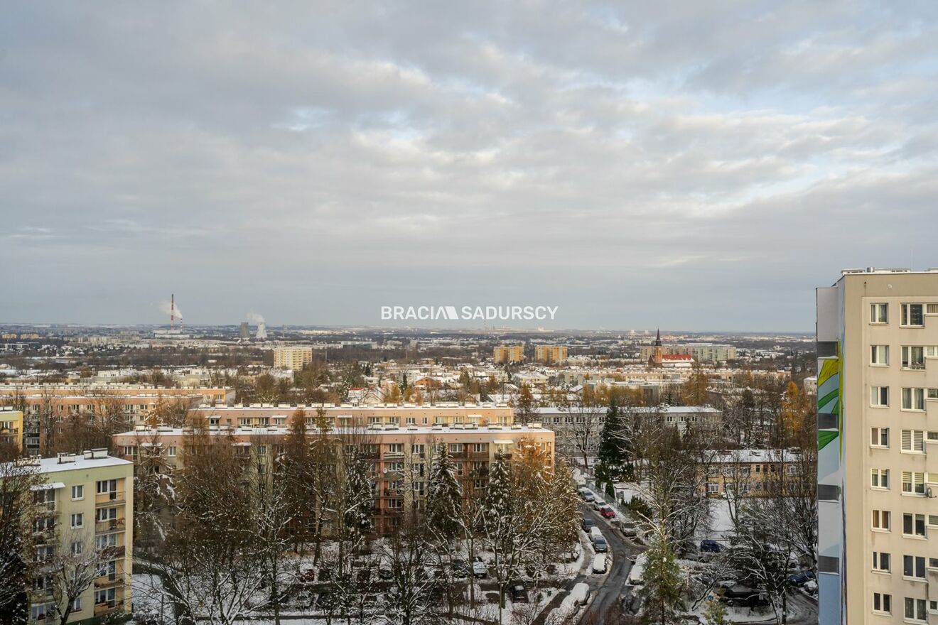 Mieszkanie znajduje się na dziewiątym piętrze, a z jego okien rozciąga się cudowny widok na panoramę miasta. Mieszkanie ma metraż 37 m2 i składa się z kuchni, pokoju, przedpokoju, sypialni i łazienki z toaletą. Pokoje zostały bardzo ładnie odświeżone: panele i ściany są w bardzo dobrym stanie. Sprzęty i instalacje w kuchni są sprawne ale meble mogą wymagać odświeżenia. W łazience mamy kabinę prysznicową. W przedpokoju znajduje się miejsce do przechowywania.