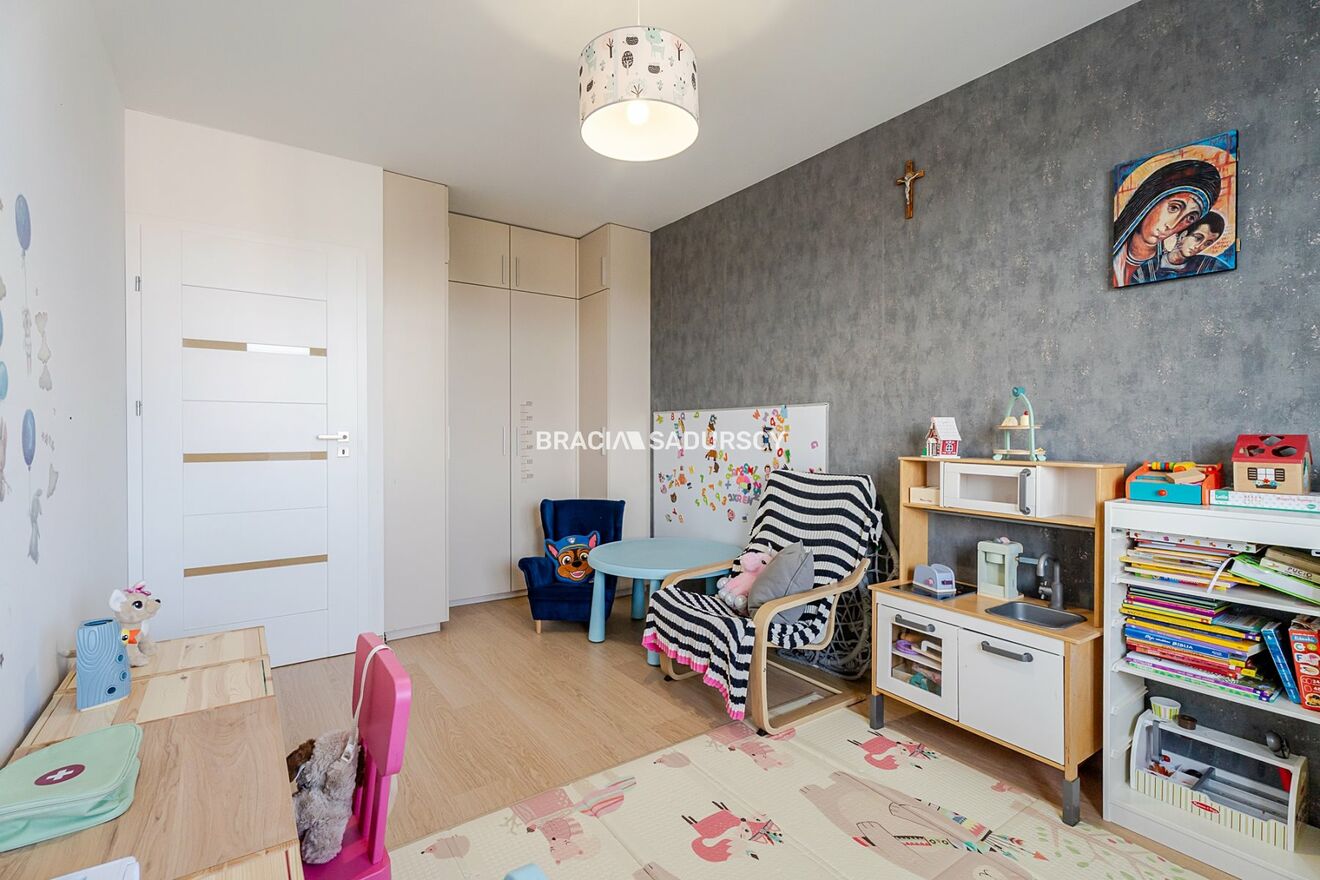 W mieszkaniu znajdują się trzy jasne i ustawne sypialnie , zapewniające prywatność i komfort domownikom. Każdy pokój posiada pojemne szafy lub garderobę, co ułatwia organizację przestrzeni.