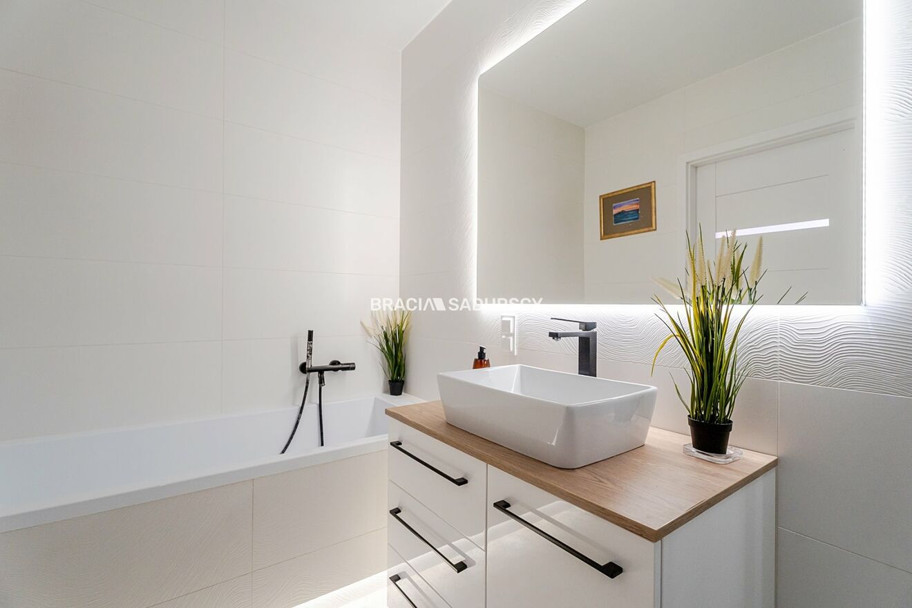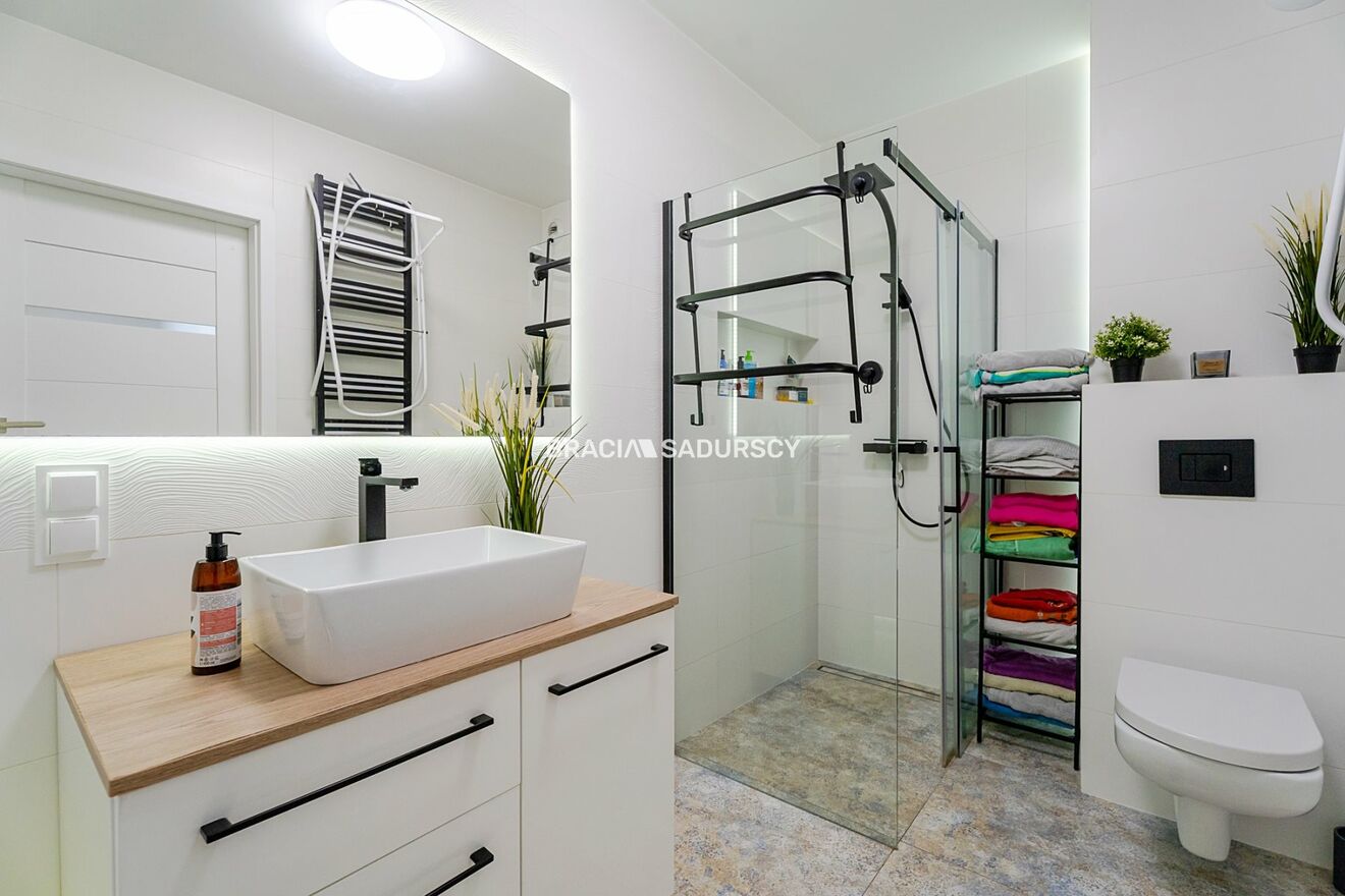Dużym atutem jest przestronna łazienka , wyposażona zarówno w wannę, jak i prysznic - rozwiązanie niezwykle praktyczne dla większej rodziny.