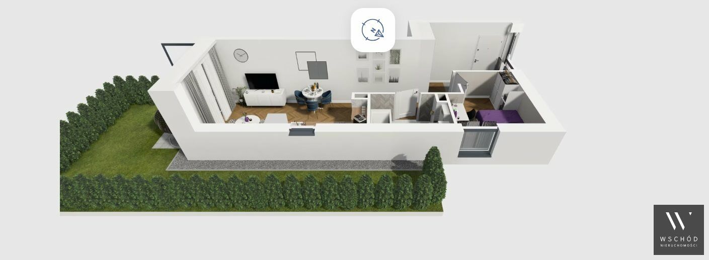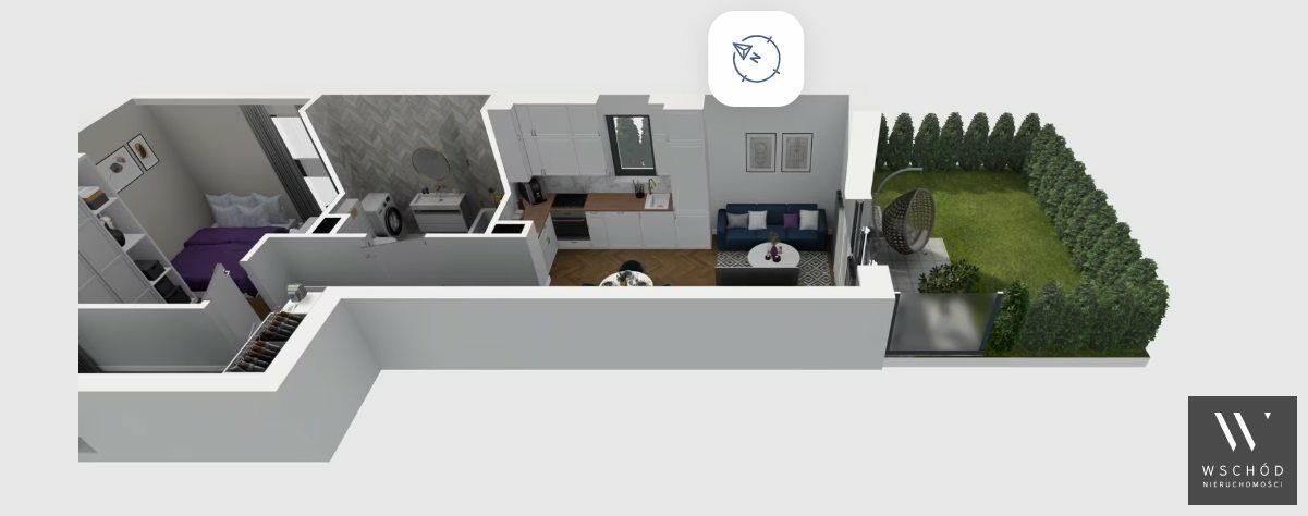 Mieszkanie składające się z salonu z aneksem kuchennym, sypialni, przedpokoju, łazienki, oraz ogródka o pow. 30m2