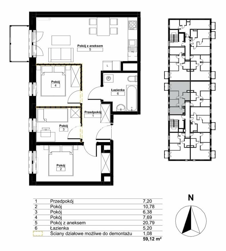 - Powierzchnia:59 m2