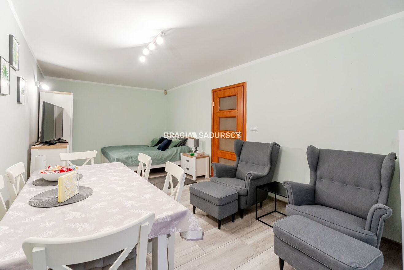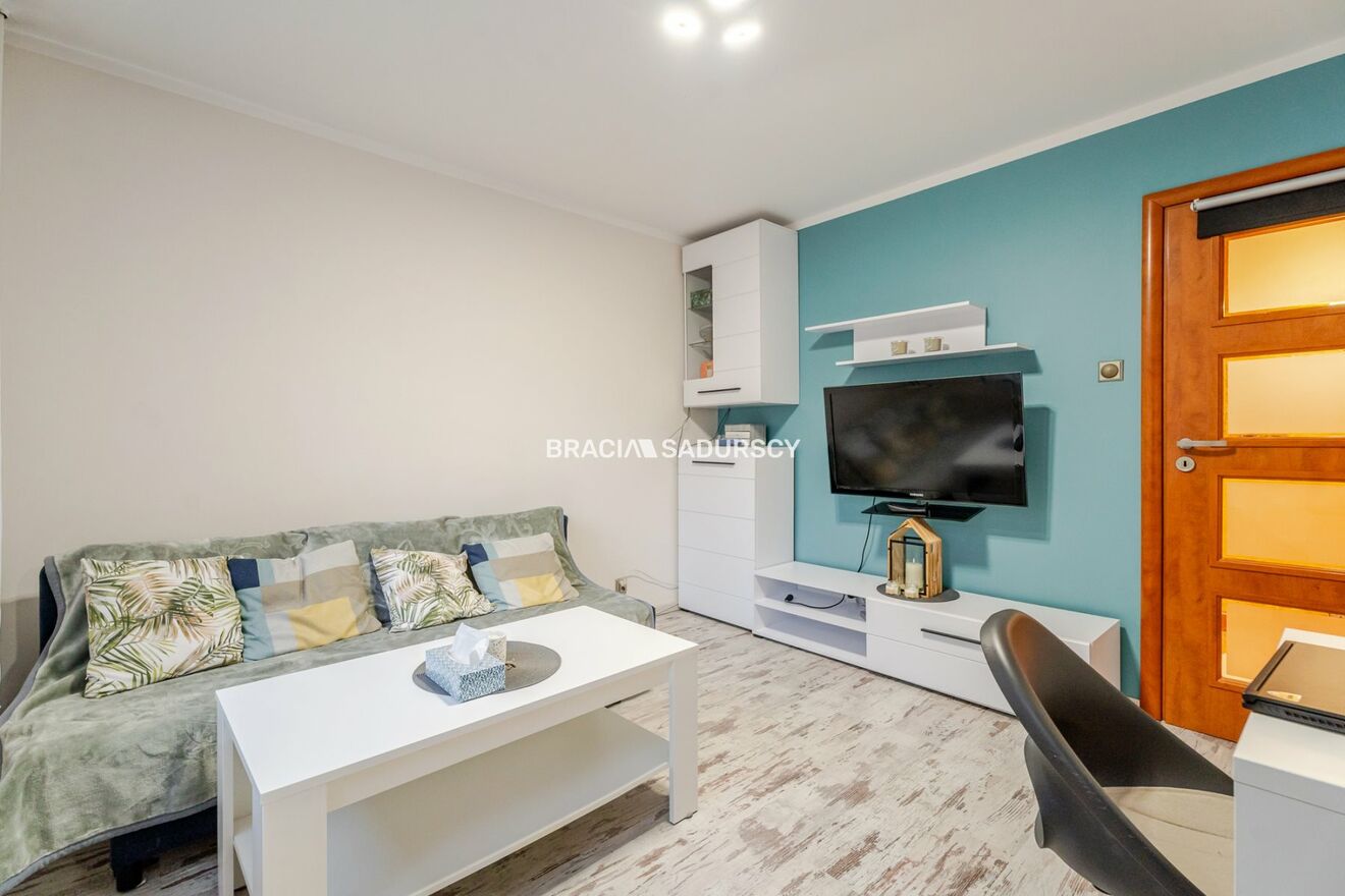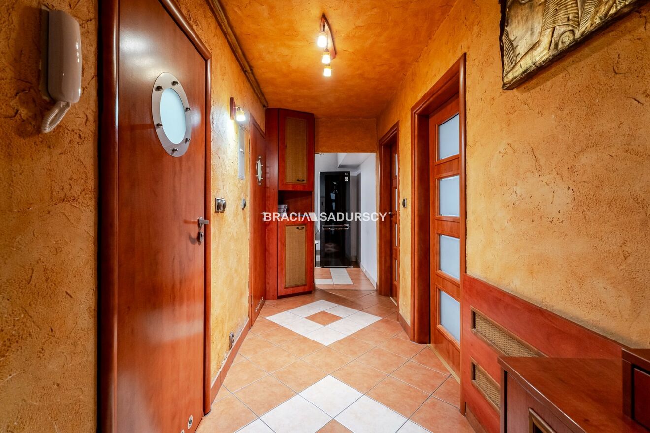 Przestronne mieszkanie o powierzchni 68,5 m² znajduje się na parterze czteropiętrowego bloku z 1976 roku, położonego w dzielnicy Nowy Prokocim . Budynek jest otoczony zielenią. Wokół dostępne są miejsca parkingowe dla mieszkańców .