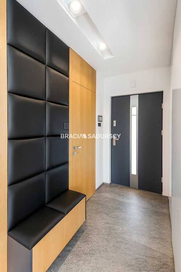 - Hol o designerskim wystroju z miejscem na garderobę.