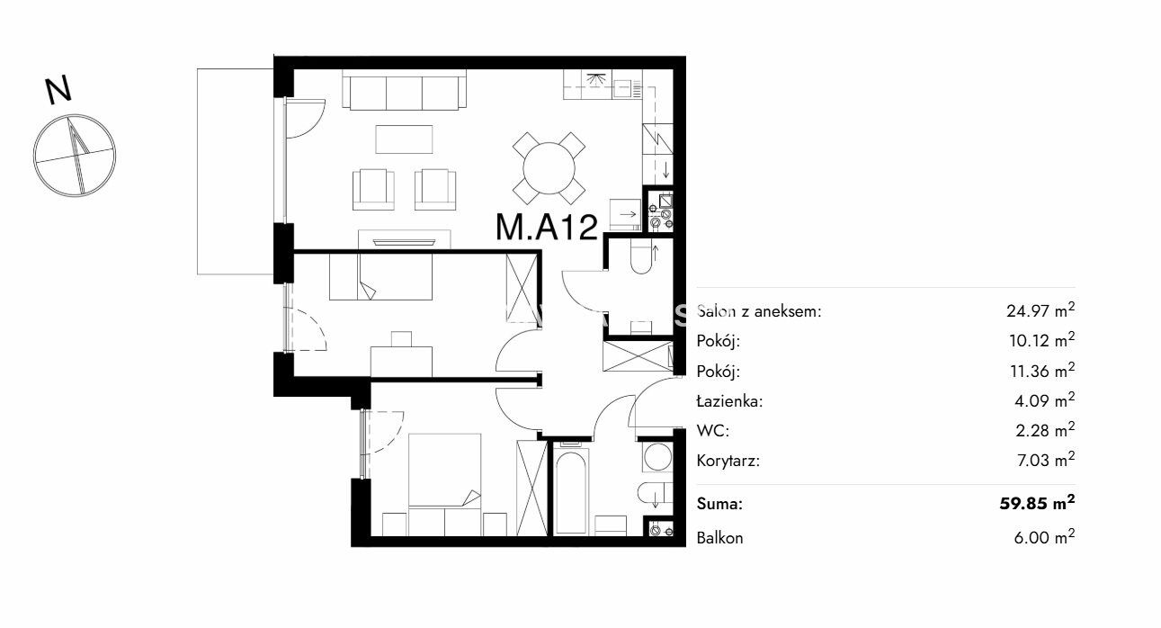 - Powierzchnia:59 m2