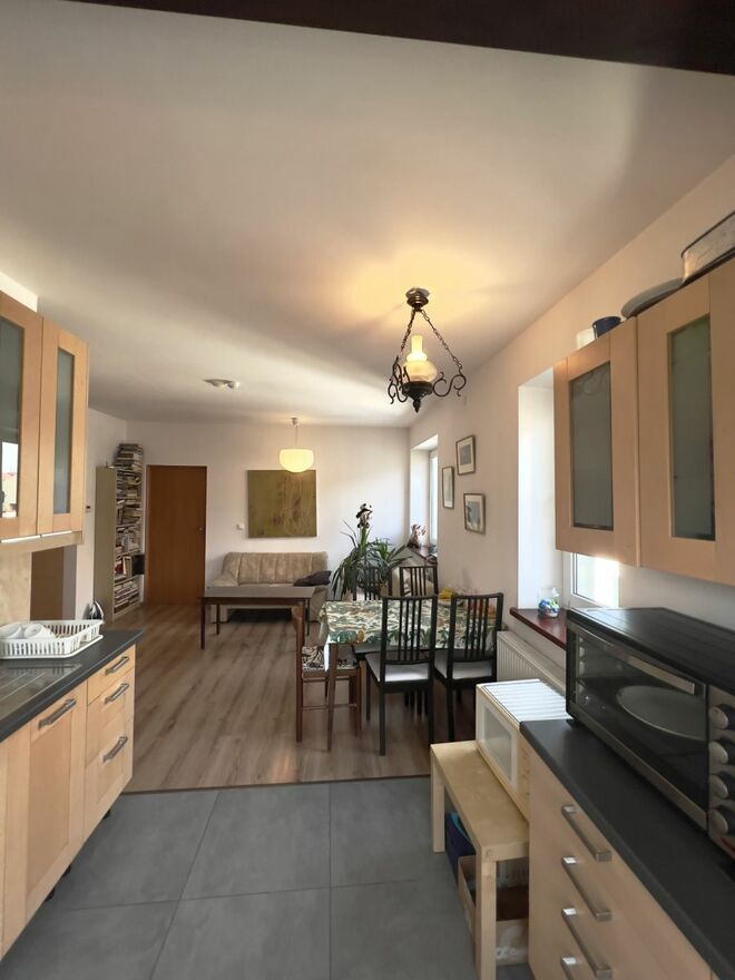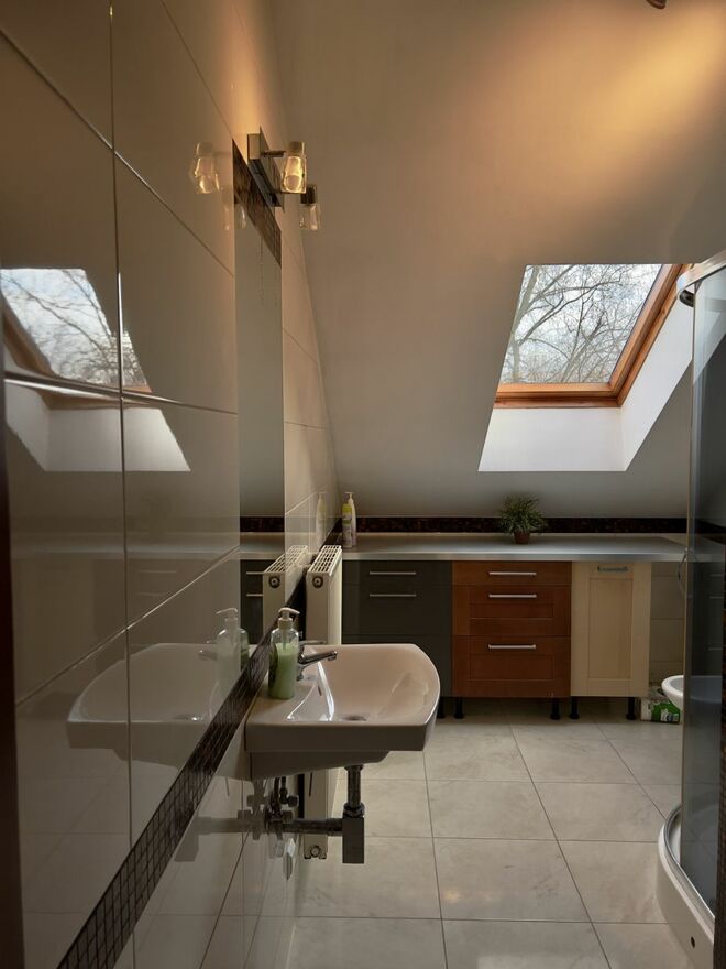 Mieszkanie znajduje się na 2 piętrze budynku jednorodzinnego. Składa się z 5 pokoi plus część wspólna czyli salon z kuchnią, łazienka i wc. Ze względu na pozostałych najemców pokój jest przeznaczony dla osoby studiującej lub od kilku lat pracującej płci męskiej.