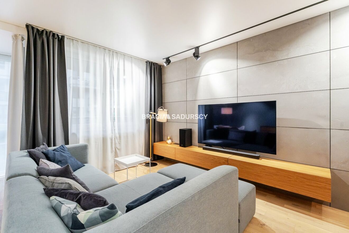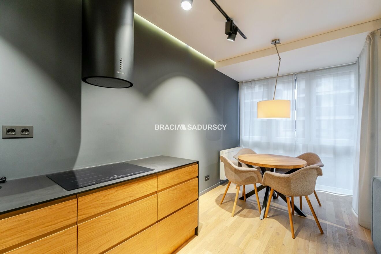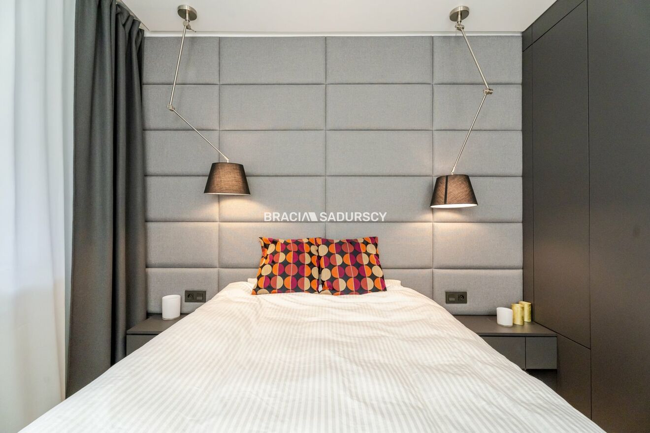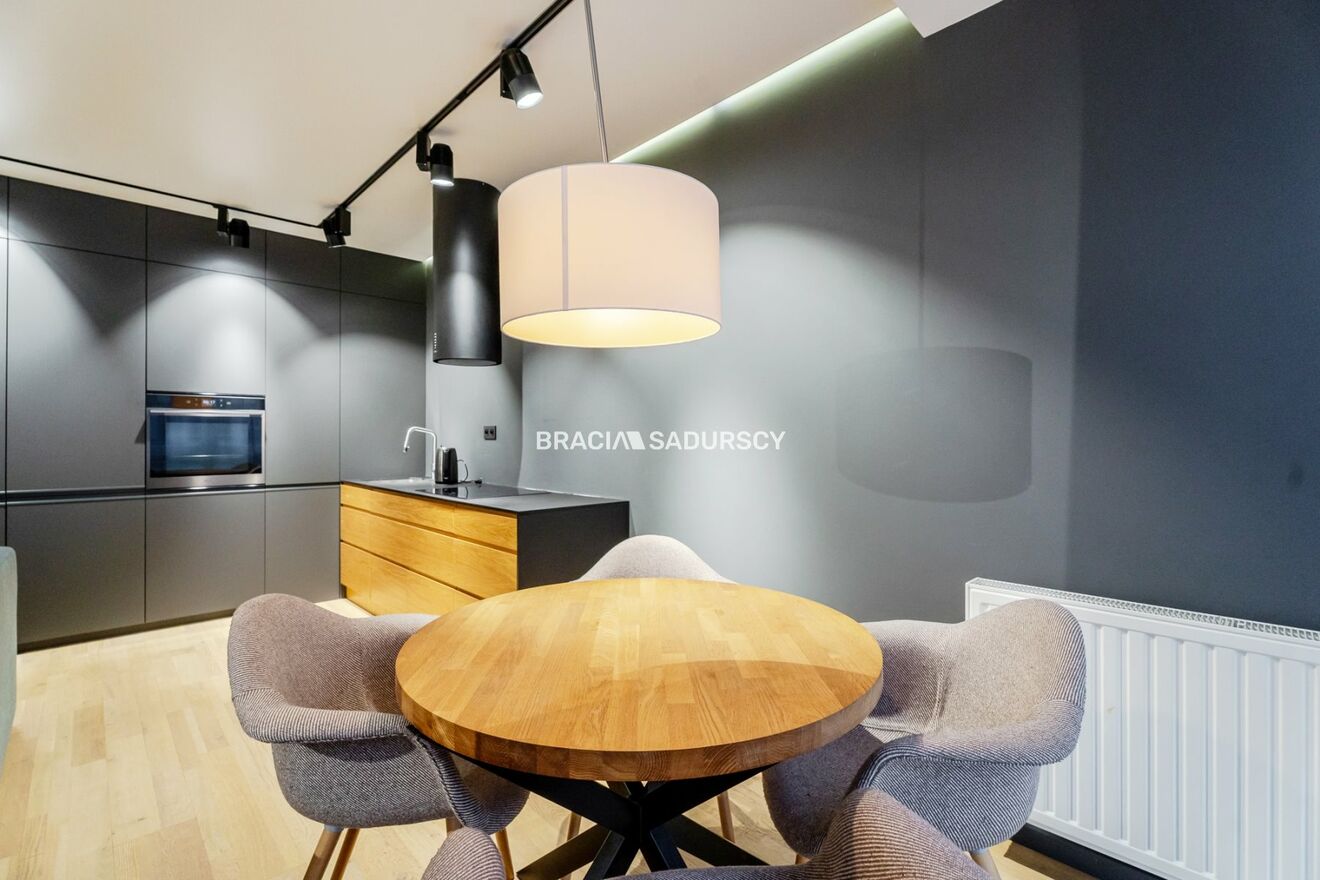 Mieszkanie zostało urządzone z dbałością o detale. Zabudowa meblowa wykonana na zamówienie, podłoga z bielonego dębu, sufity napinane, nowoczesne i efektowne oświetlenie. Nieruchomość nie była wcześniej zamieszkana.
