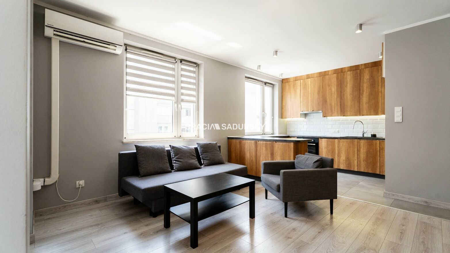 |Na sprzedaż 2-pok. mieszkanie z klimatyzacją, miejscem postojowym w garażu podziemnym i komórka lokatorską o powierzchni 46,02 m2 według księgi wieczystej, jednak realnie to 46,38 m2 , ponieważ uwzględniono ściankę działową (0,12 x 3 m = 0,36 m2), która została usunięta przy wykończeniu lokalu, co optycznie powiększa przestrzeń dzienną.