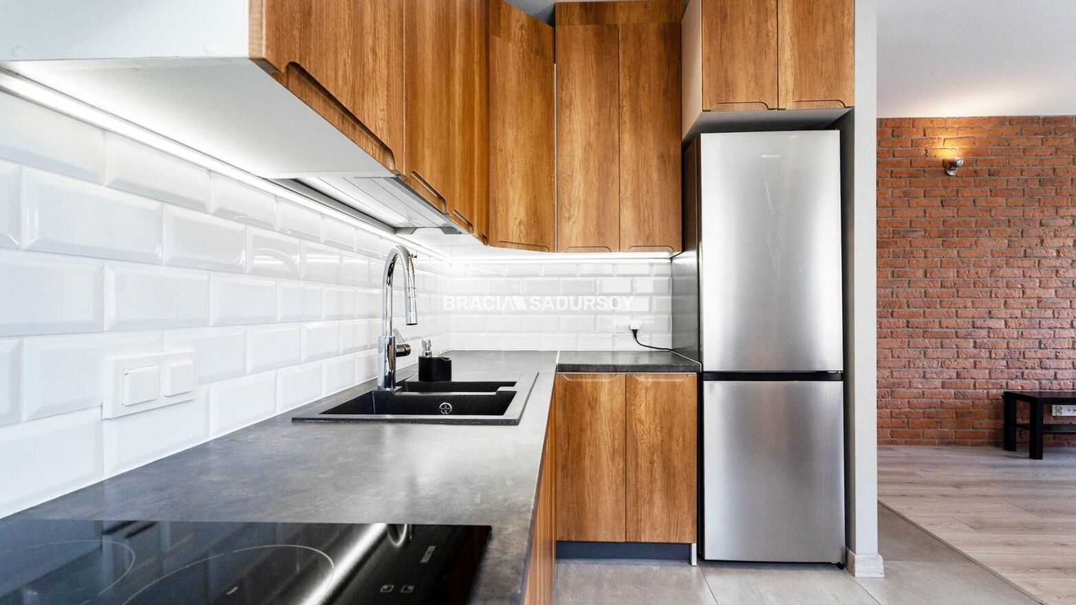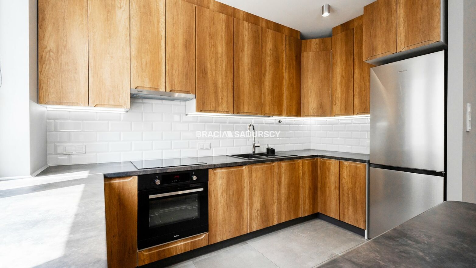 Wyposażenie kuchni: gniazdka nablatowe, wyspa, stała zabudowa, szafki wiszące, szafki stojące, meble kuchenne na wymiar, zmywarka, zlewozmywak z baterią, zabudowa kuchenna, wyposażenie drobne, szafki kuchenne, sprzęt AGD, płyta indukcyjna, piekarnik elektryczny, okap kuchenny, lodówka |