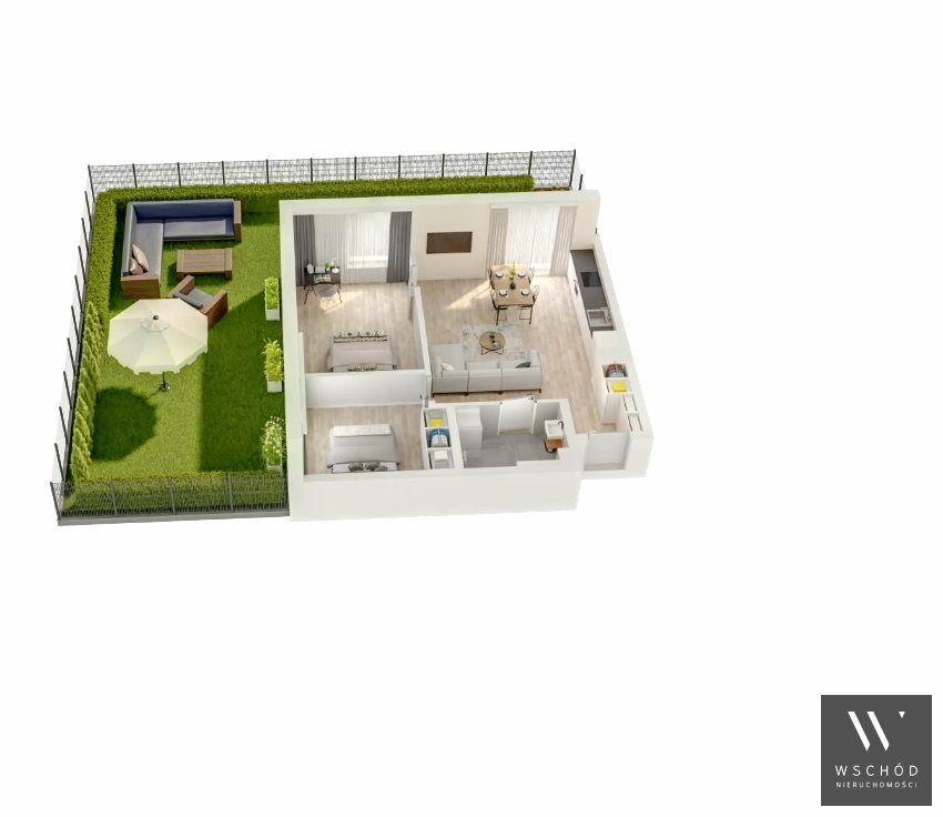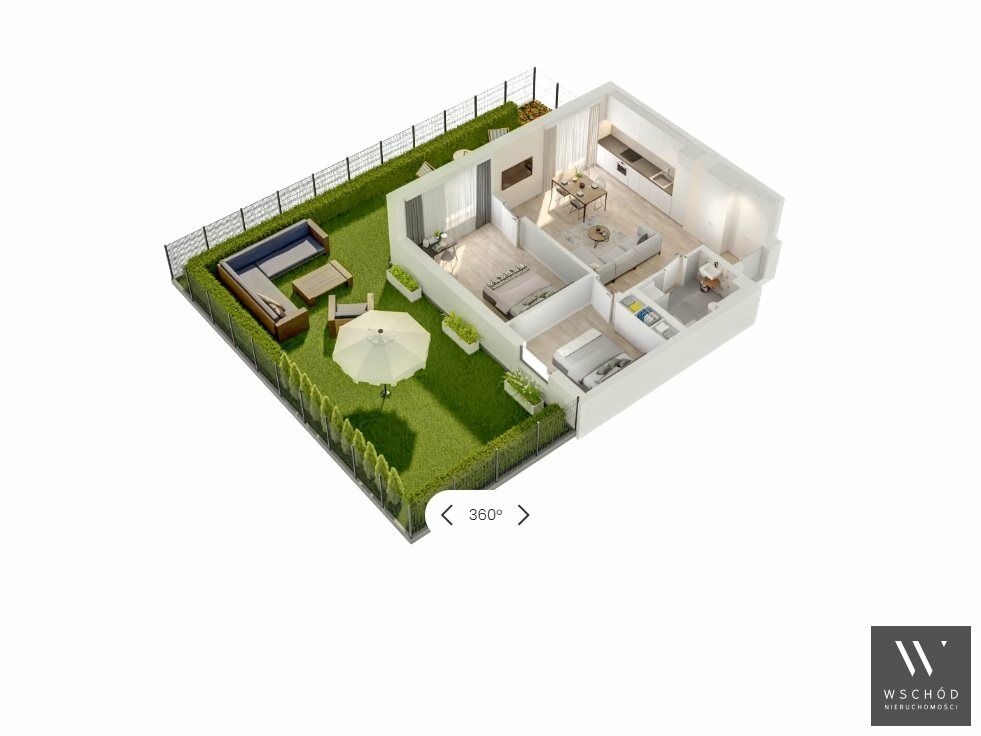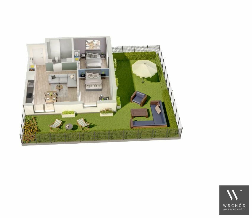 Mieszkanie składające się z salonu z aneksem kuchennym dwóch sypialni, przedpokoju, łazienki oraz narożnego ogródka o pow. 110m2
