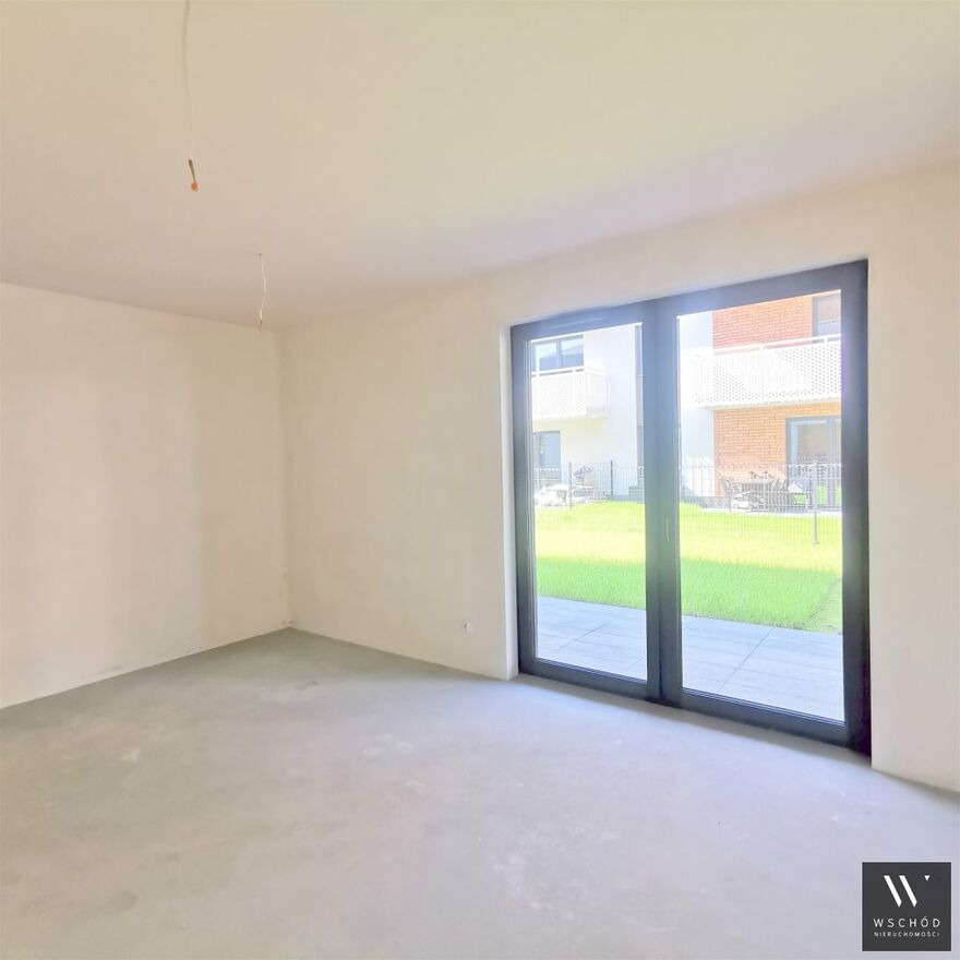 Mieszkanie składające się z salonu z aneksem kuchennym z wyjściem na ogródek, sypialni, przedpokoju, łazienki.