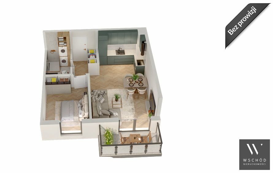 Mieszkanie składające się z salonu z aneksem kuchennym , sypialni, przedpokoju, łazienki oraz balkonu