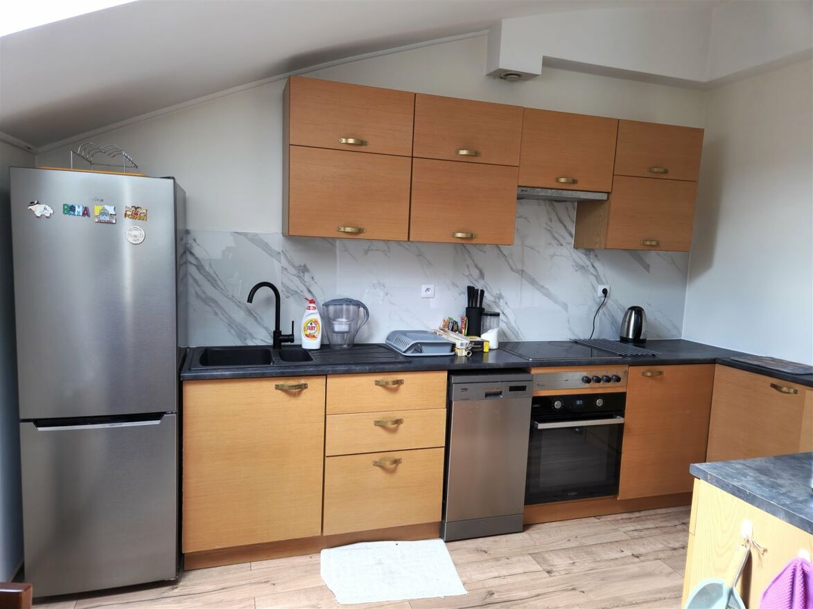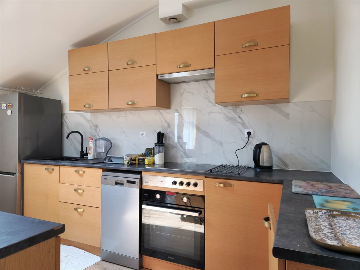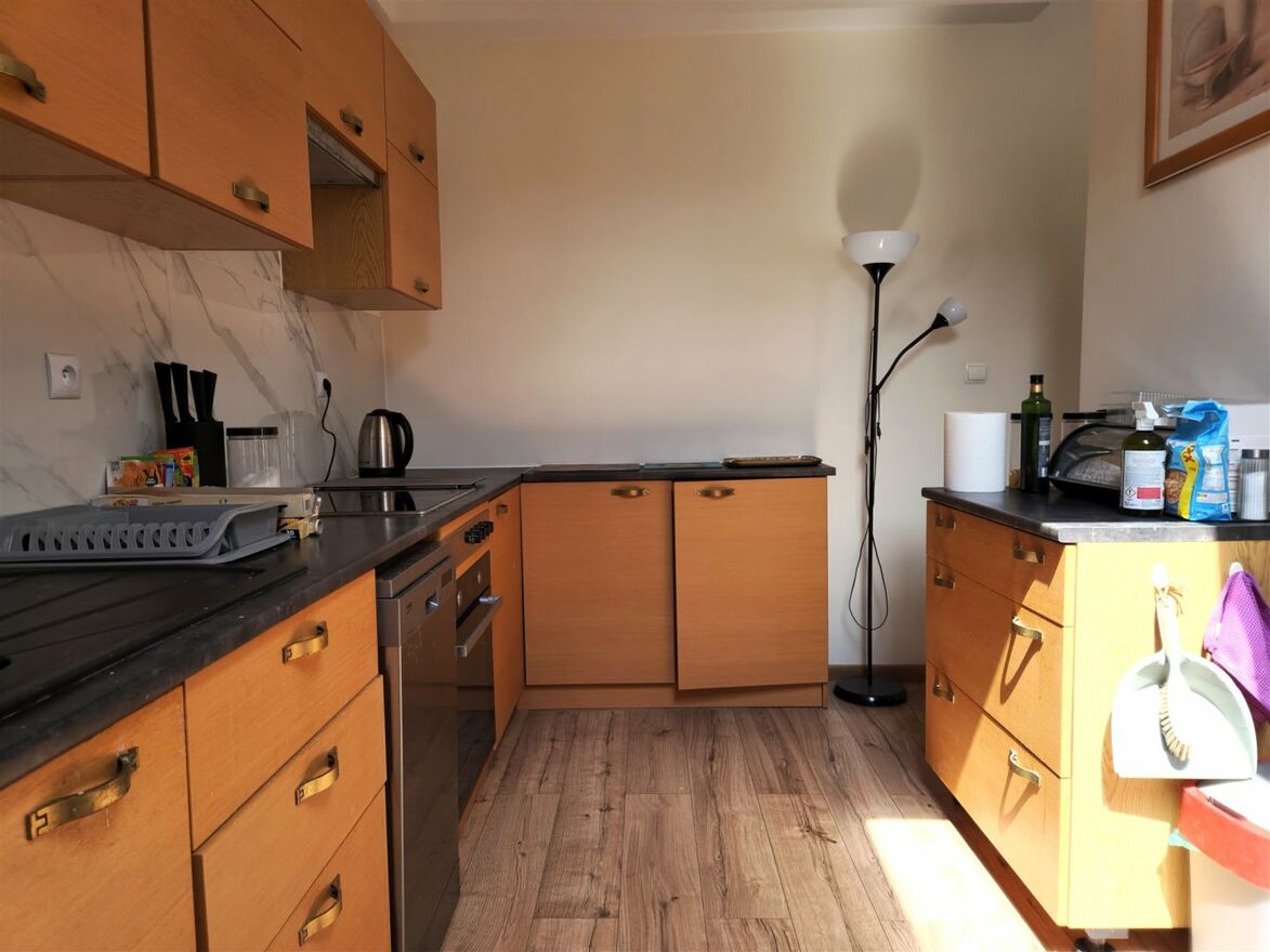 Kuchnia połączona z pokojem, umeblowana i wyposażona.