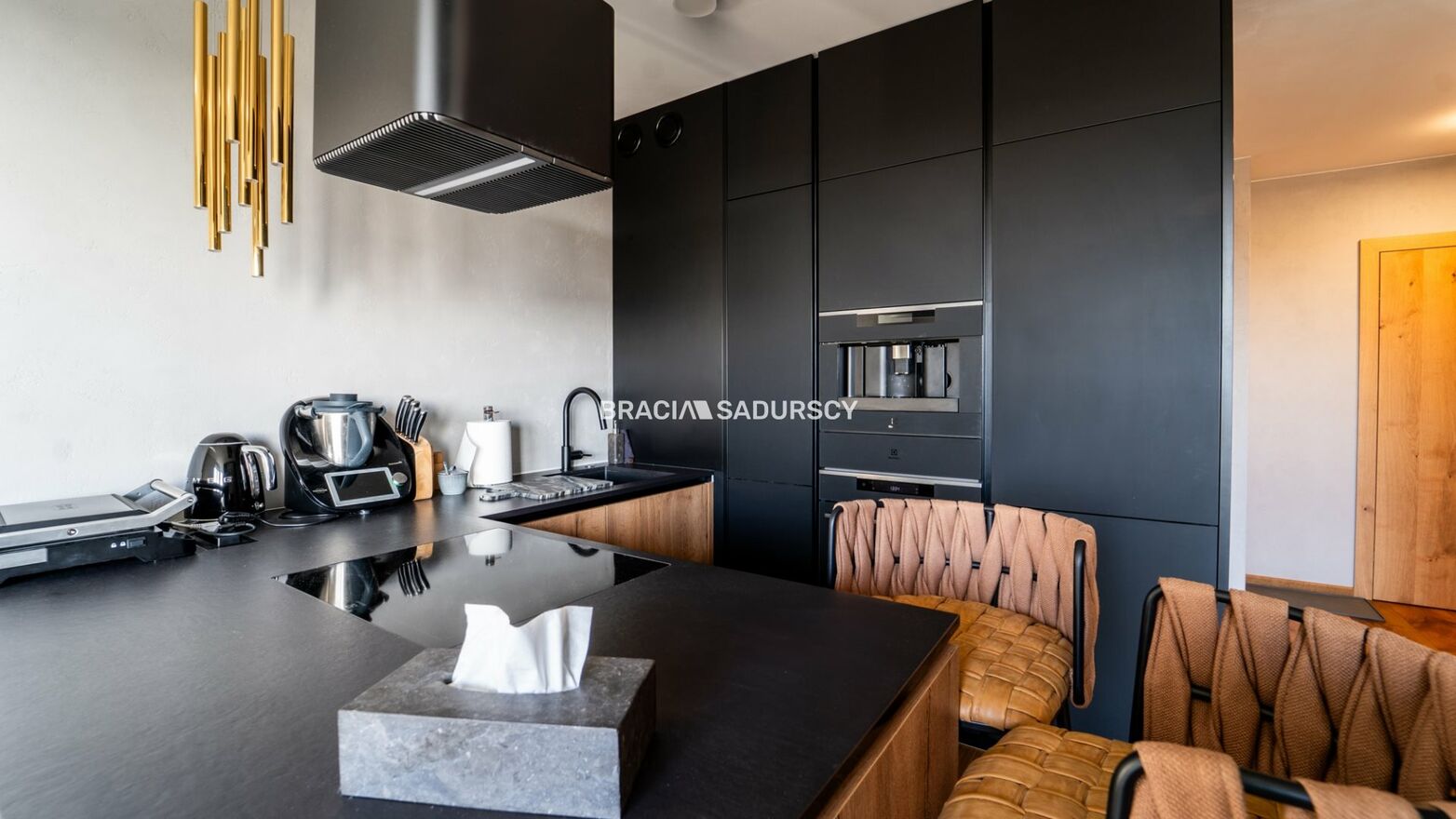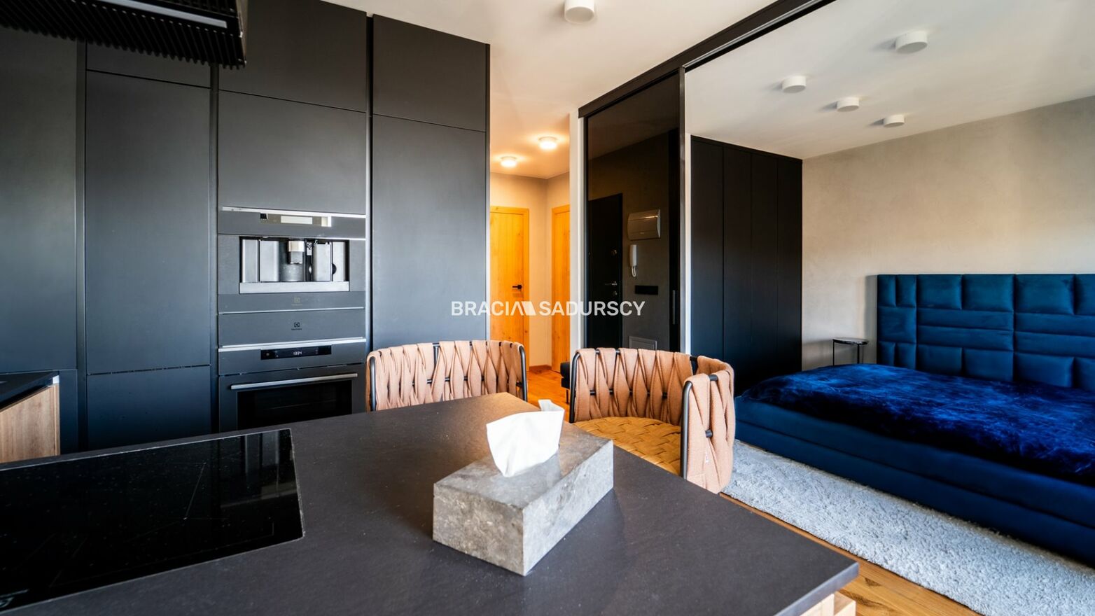 Mieszkanie jest wyposażone i umeblowane min. w sprzęty Electrolux - okap, zmywarka, piekarnik z mikrofala, lodówko-zamrazarka, płyta indukcyjna, szuflada do podgrzewania, wbudowany ekspres do kawy, pralko-suszarka, sypialnia: łóżko 180x200, szafa.