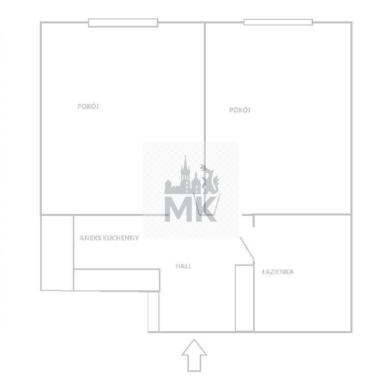 układ: 2 zamykane pokoje, aneks kuchenny (w przedpokoju), łazienka z WC