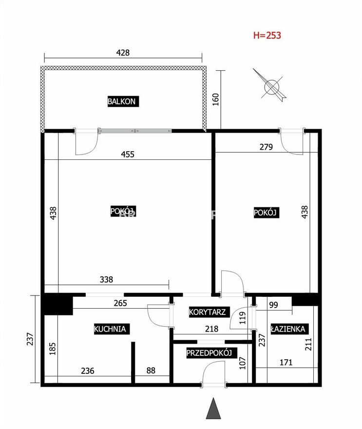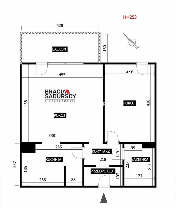 Rozkład mieszkania: mieszkanie położone jest na 2 piętrze w 4 piętrowym budynku, o łącznej powierzchni około 50 m2.