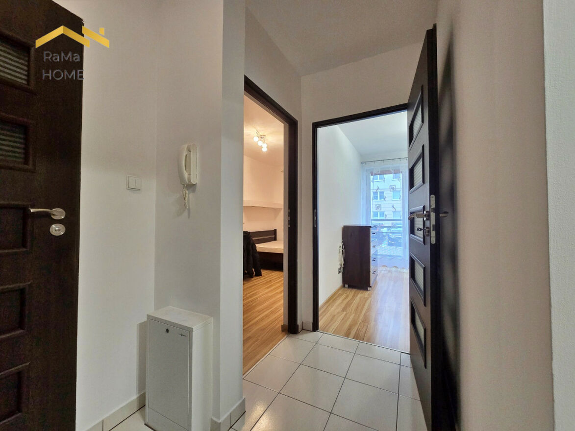 A functional and well-designed apartment for rent, located on the ground floor of a well-maintained building on Śliczna Street in Kraków.
