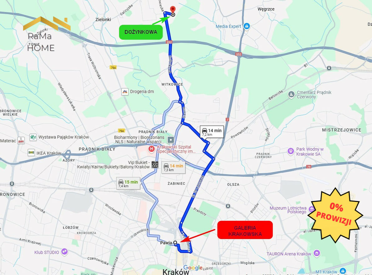 i "Węgrzce", północnej obwodnicy Krakowa, zajmuje 8 min.