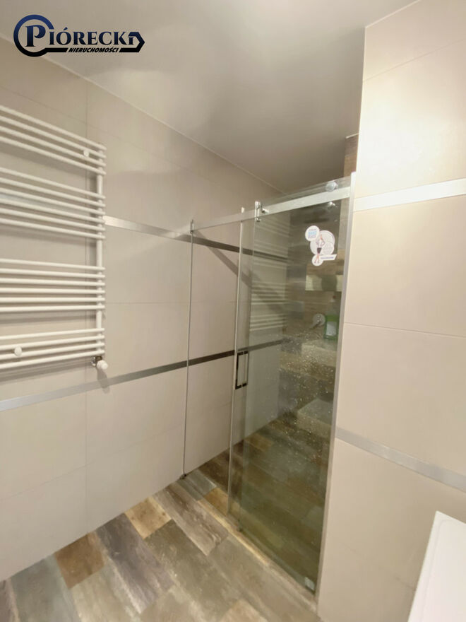 - Łazienka: z dużym prysznicem typu walk-in, pralka