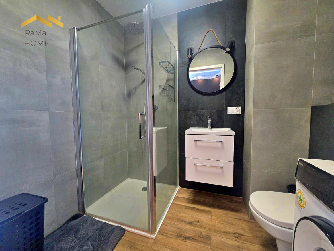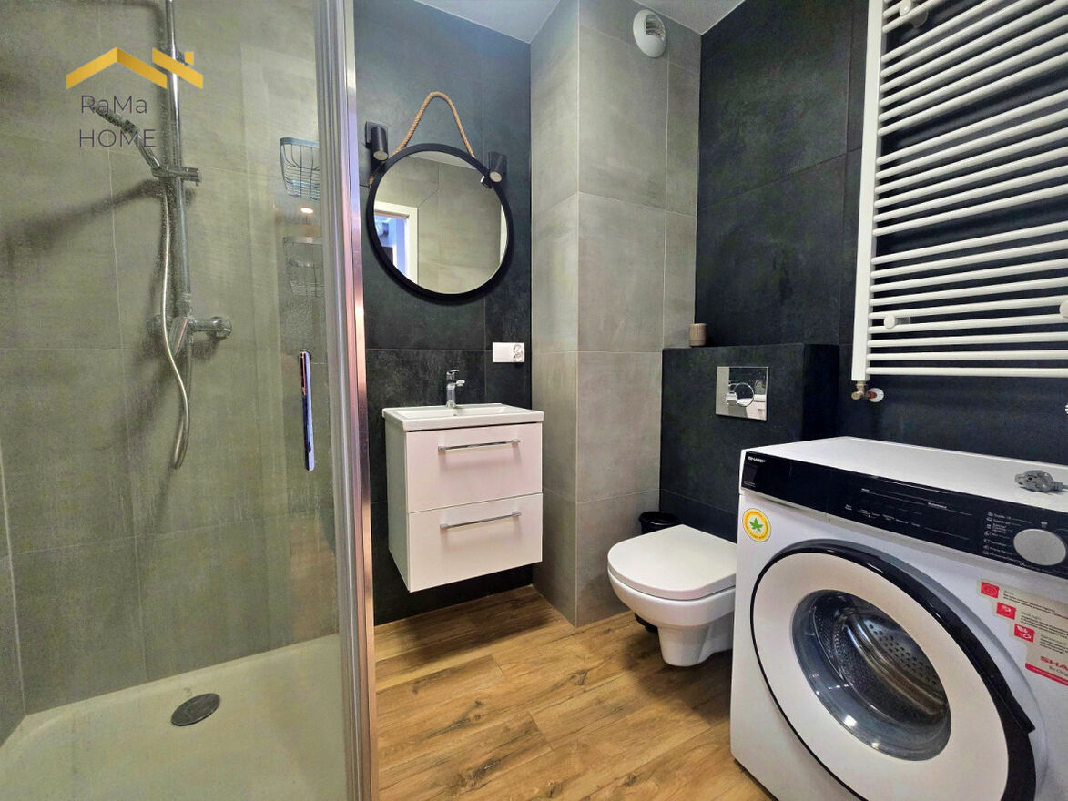 • Łazienka: Nowoczesna, z kabiną prysznicową i pralką.