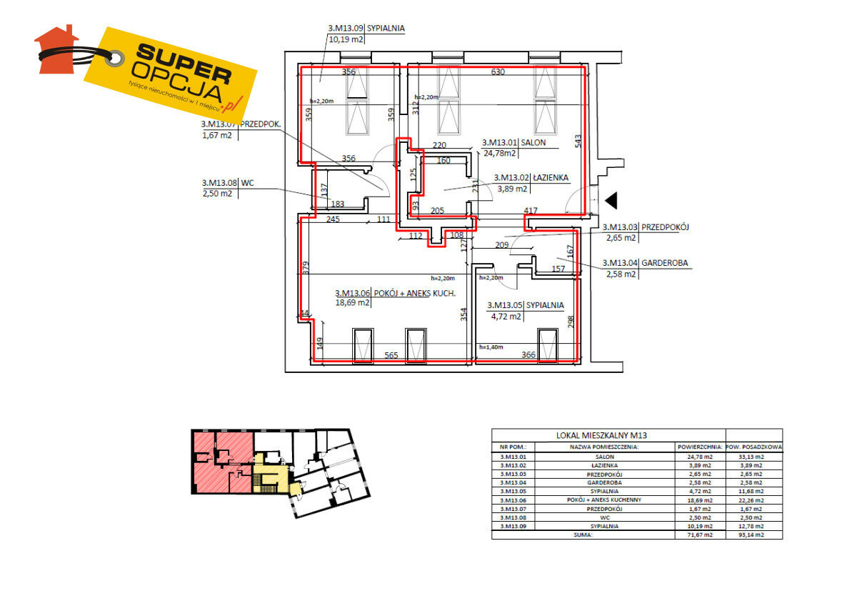 • powierzchnia użytkowa 71,64m, powierzchnia całkowita 93,14m.