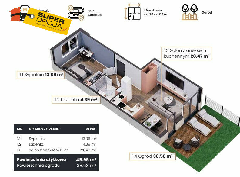 - Powierzchnia:45 m2