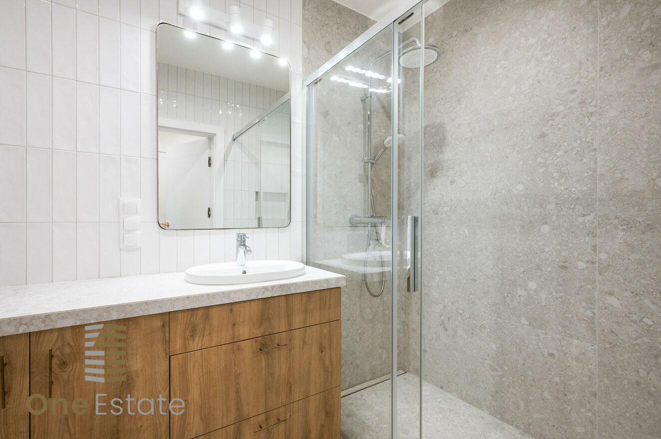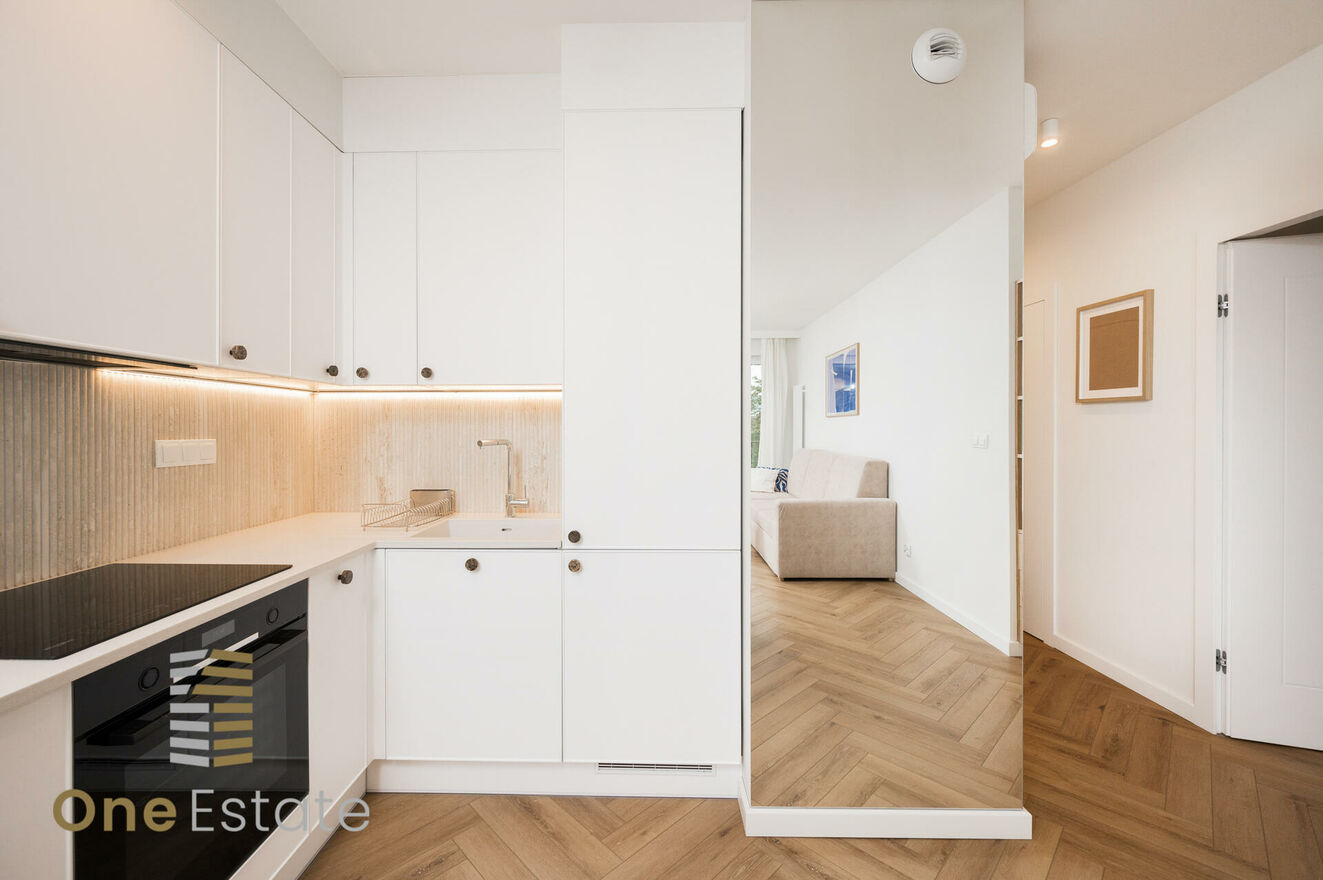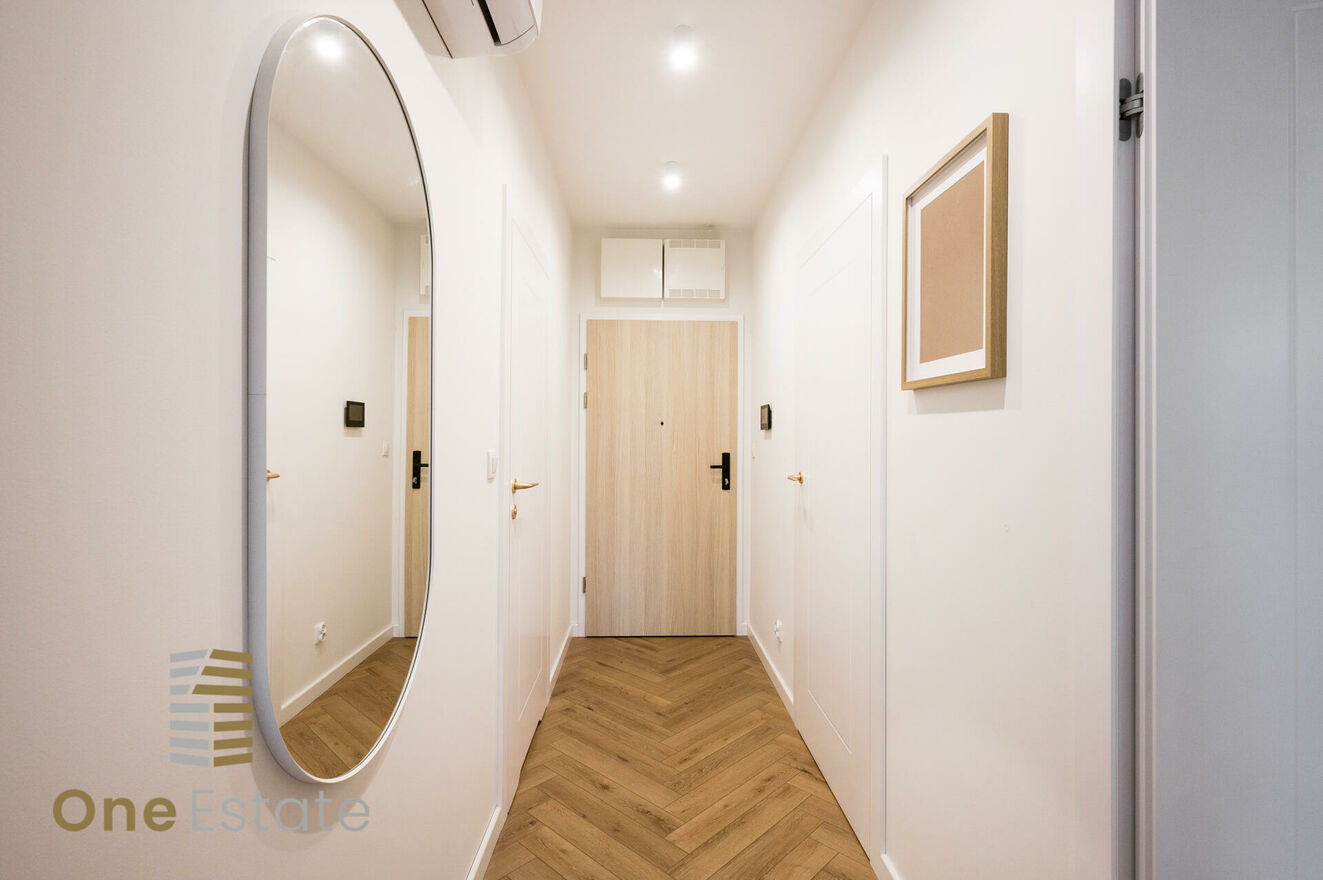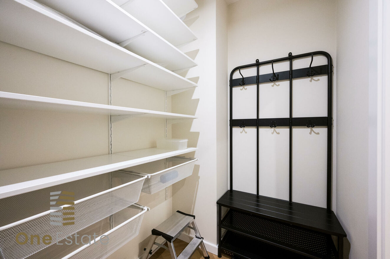 Mieszkanie posiada dużą garderobę, salon z aneksem kuchennym i dużą sypialnię. Sporo jest przestrzeni do przechowywania, co jak wiadomo często jest problemem w mieszkaniach na wynajem. Kamienny blat uprzyjemni gotowanie.