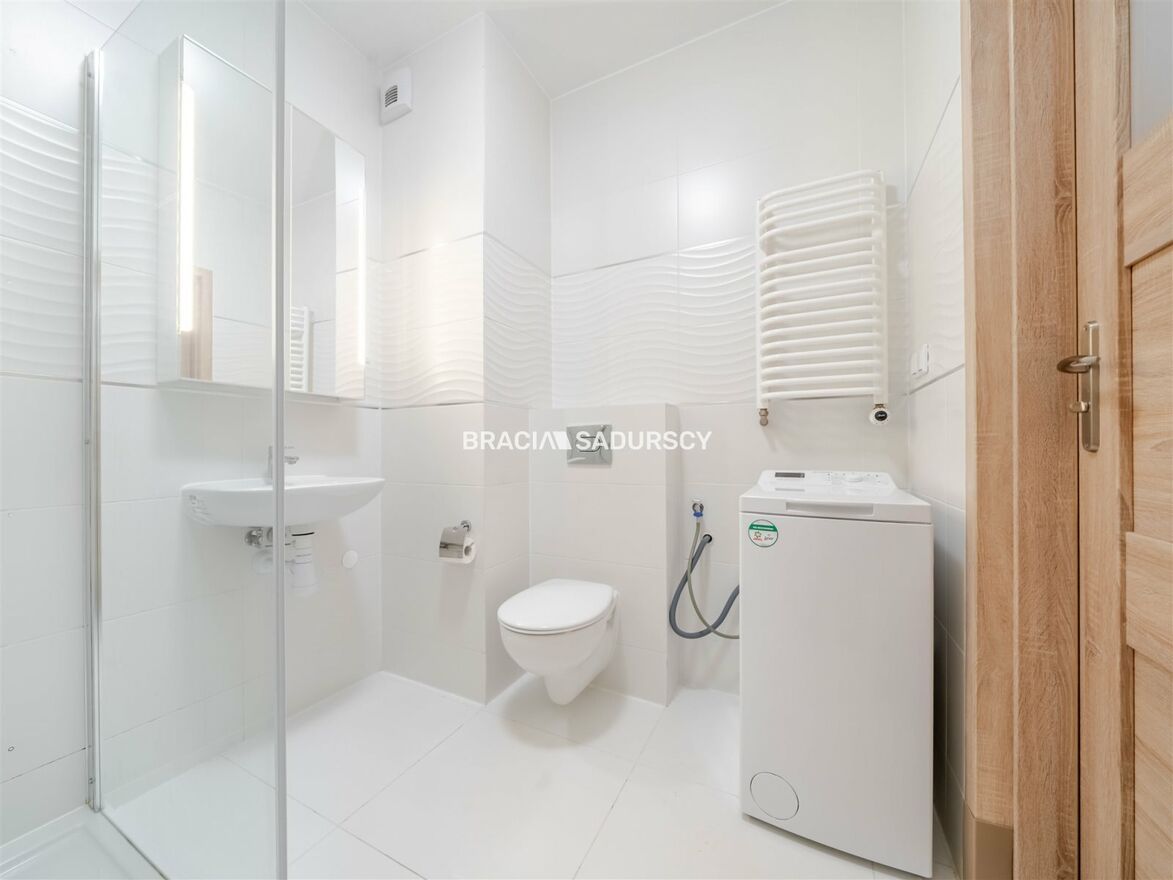 For rent: a modern, fully furnished 40 m² apartment with a large balcony , located in the prestigious Grzegórzki district of Kraków. The apartment is situated on the 1st floor of a modern building with an elevator (year of construction: 2015 ).