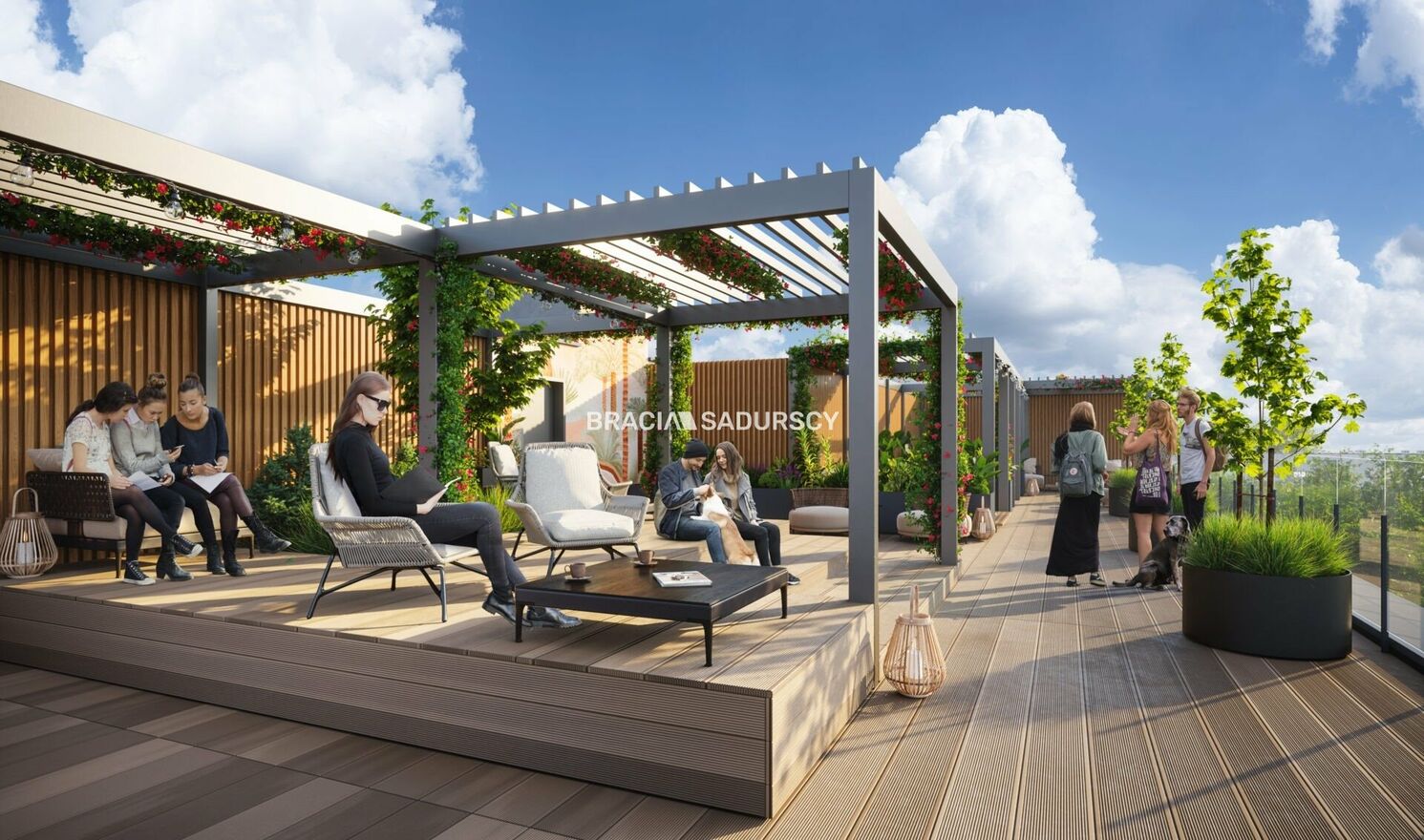 Eleganckie klatki schodowe. Wykończenia szkłem. Sale spotkań. Lobby z recepcją. Przestrzeń coworking. Ogólnodostępny taras na dachu. Pralnia. 3 windy. Garaż podziemny. Stojaki na rowery.