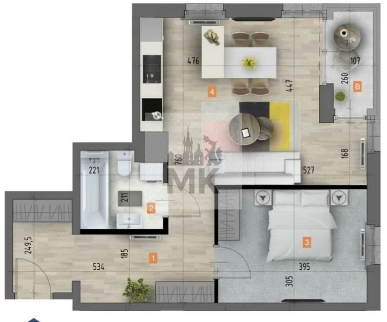 Oferujemy mieszkanie o powierzchni ok. 50 m, położone na parterze w nowoczesnym bloku z windą (rok budowy 2020).
