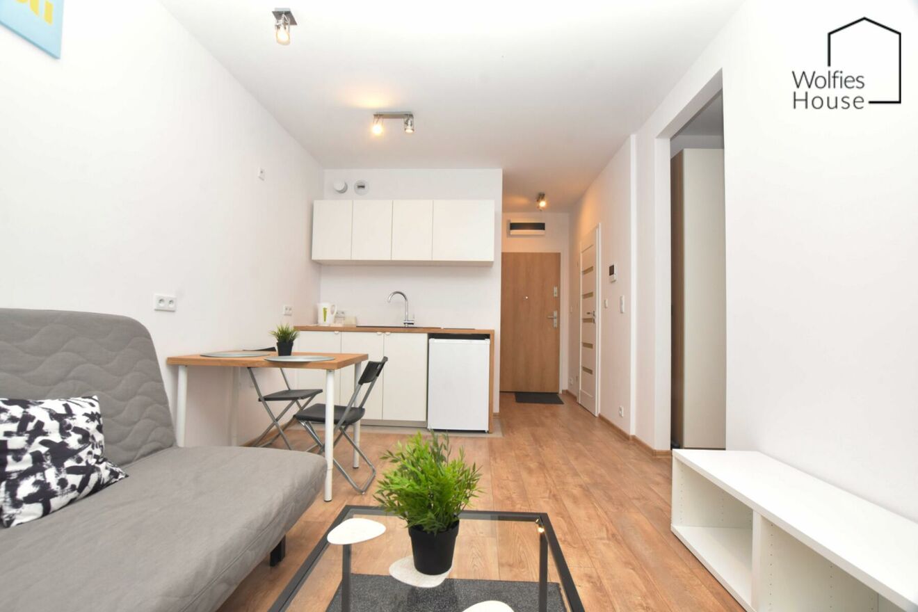 The apartment is located on Saska Street in Płaszów. It's an ideal place for those who appreciate beautiful views (proximity to the Bagry Reservoir) without sacrificing the attractions of beautiful Krakow. Numerous tram and bus lines allow for easy and quick access to the city center.