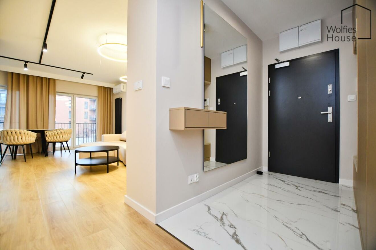 Wolfies House is pleased to present a modern, three-room apartment located in a fashionable and interesting neighborhood on Stanisława Klimeckiego Street in Zabłocie.