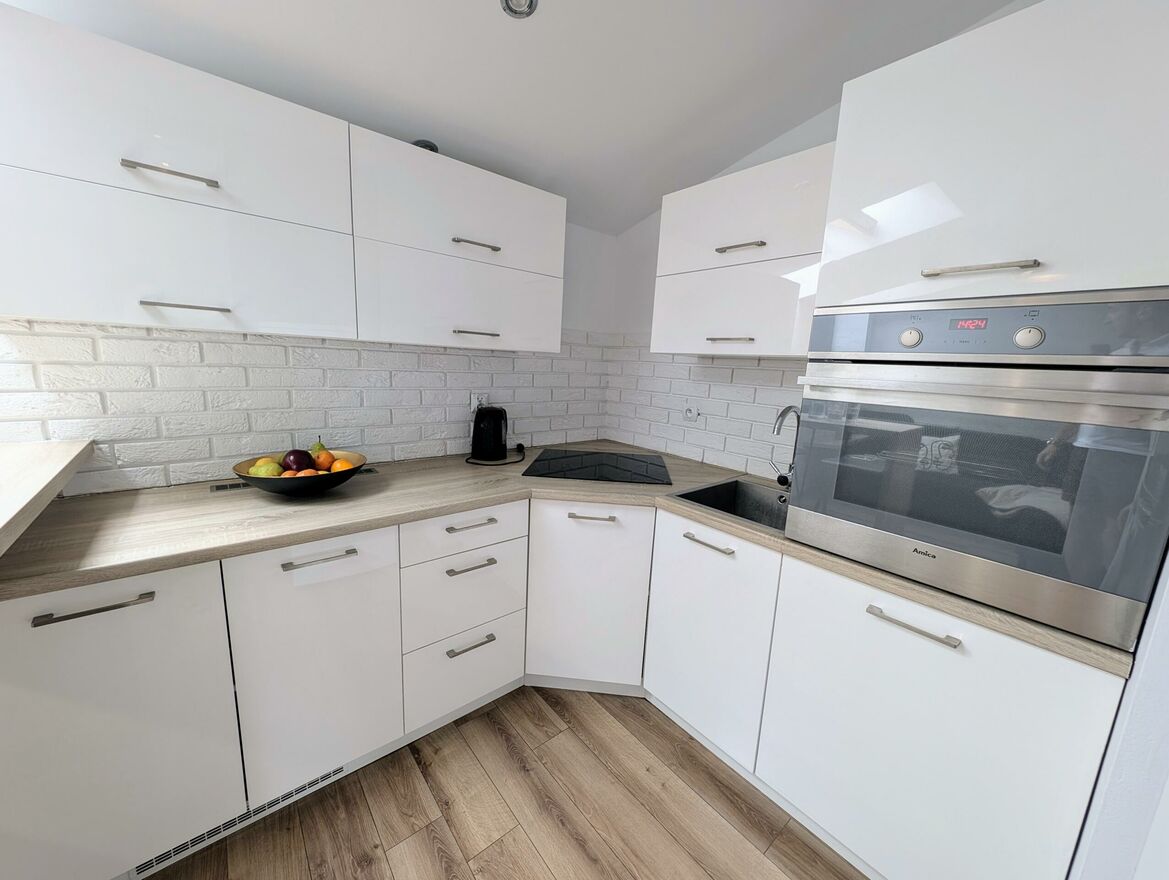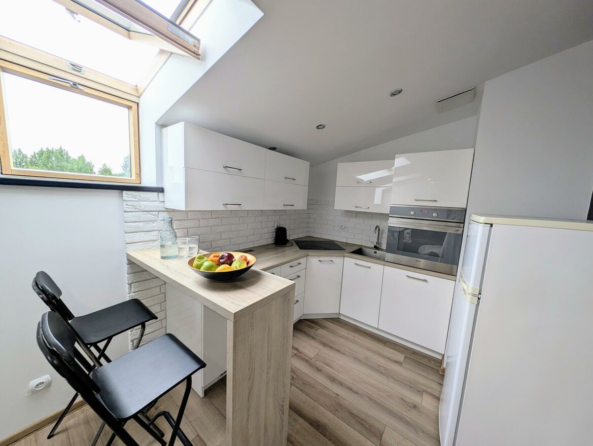 Aneks kuchenny z płytą indukcyjną, zmywarką, piekarnikiem, lodówką, mikrofalówką,