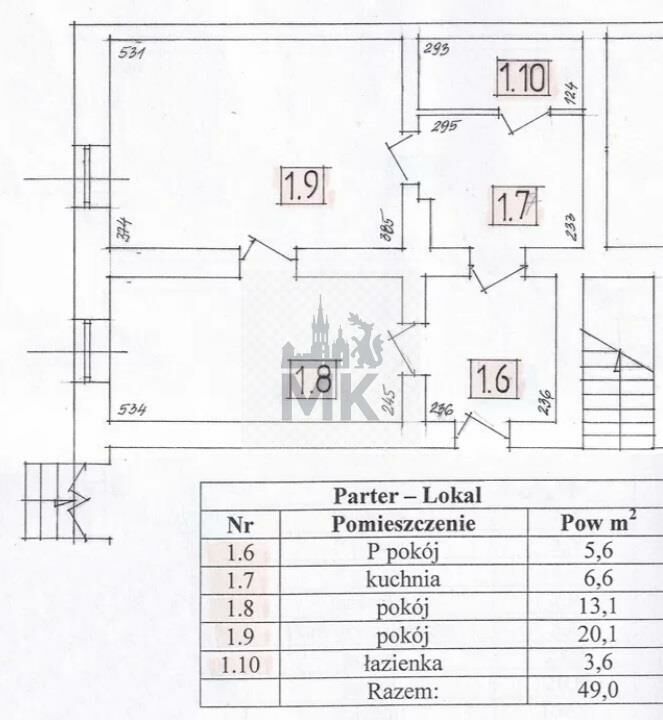 Lokal:Mieszkanie o powierzchni 49 m, składające się z: