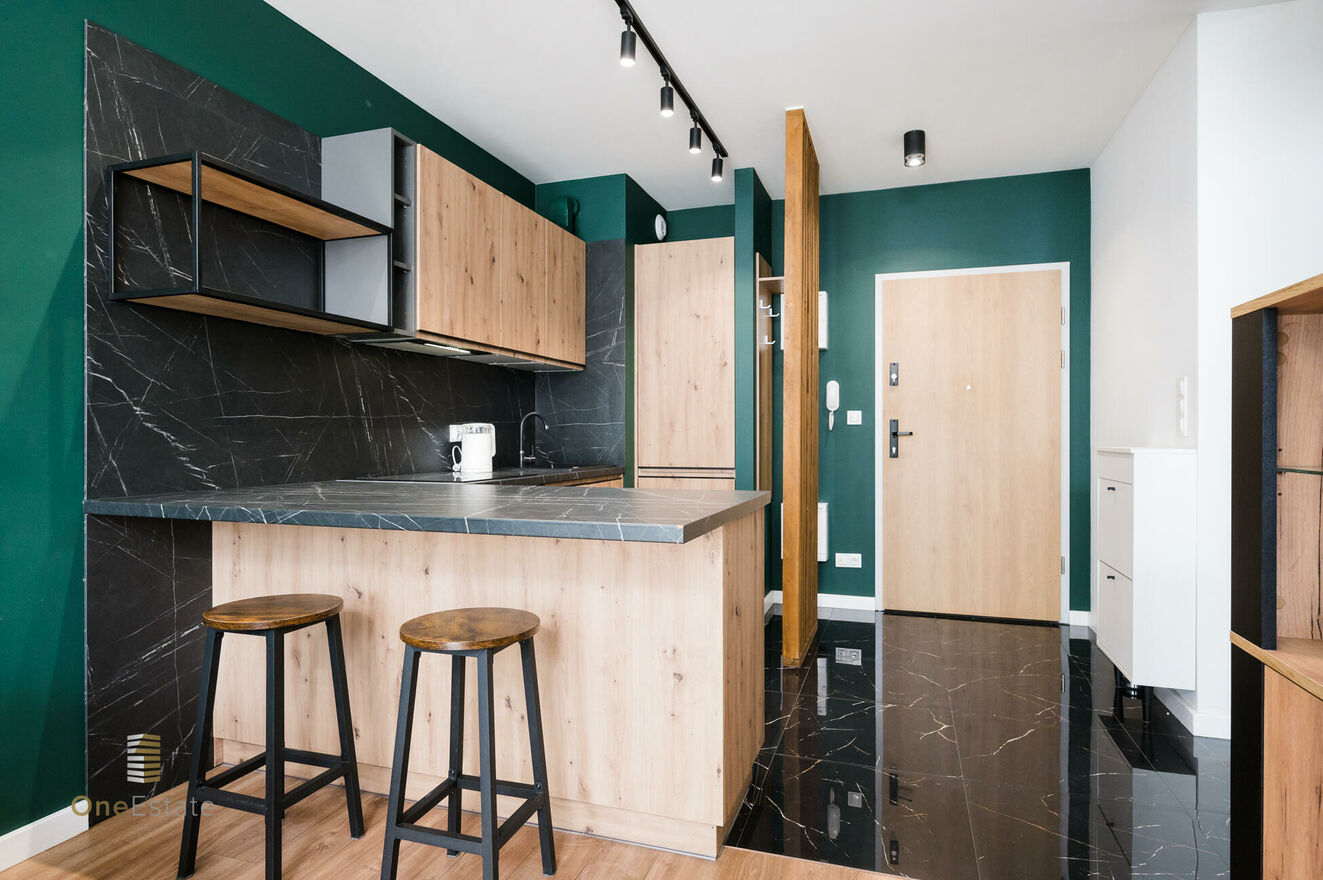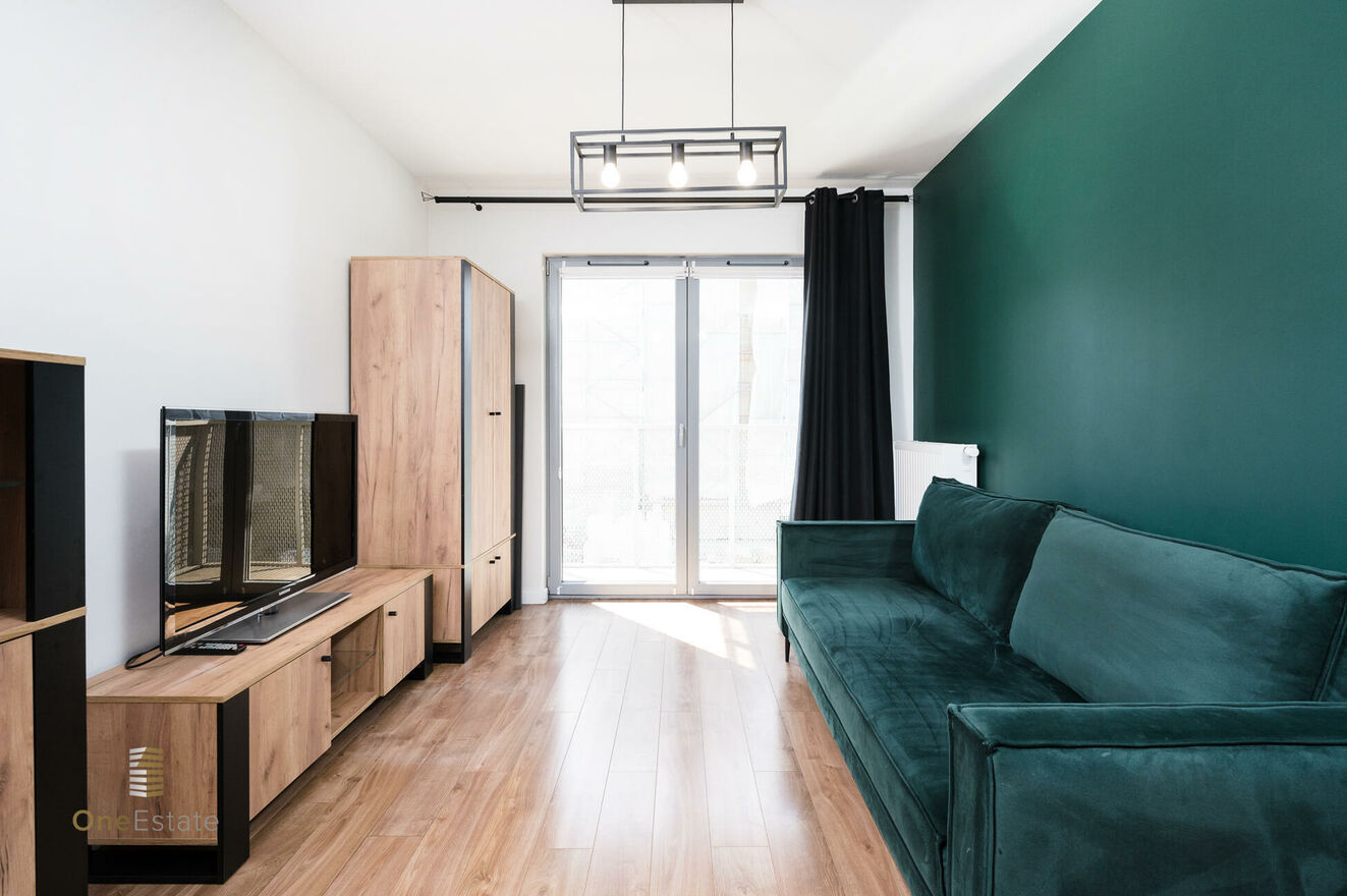 Mieszkanie urządzone w fajnym standardzie. Dużo szaf, wyposażona kuchnia, przyjemny, nowy budynek i okolica.