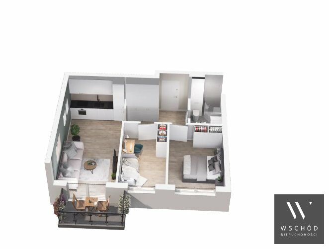 Mieszkanie składające się z salonu z aneksem kuchennym, dwóch sypialni , przedpokoju, łazienki oraz balkonu