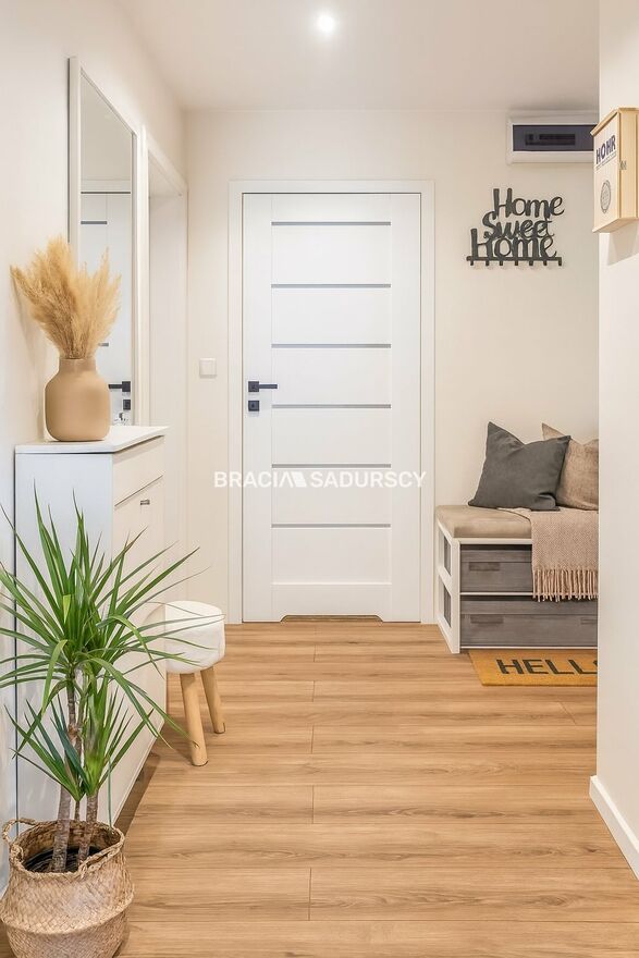 Jednym z wielu atutów tego mieszkania jest oddzielne pomieszczenie, które spełnia funkcję garderoby/ pomieszczenia gospodarczego (z odpływem wody).