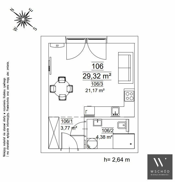Do sprzedania komfortowe 1 pokojowe mieszkanie o pow. 29m2 położone na 4 piętrze 4 piętrowego budynku z 2026r
