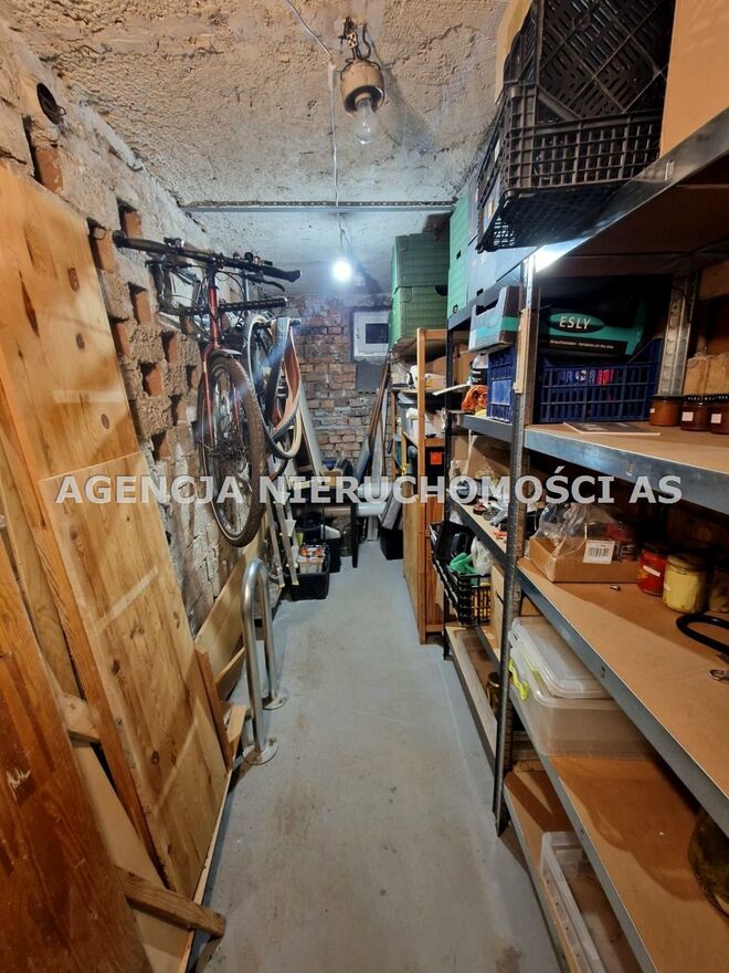Piwnica jest wyposażona w regały magazynowe, wieszak i stojak na rowery, a w 2024 roku została wykonana nowa wylewka i pomalowana farbą do betonu.