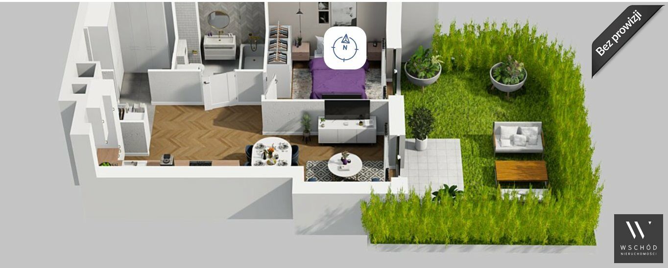Mieszkanie składające się z salonu z aneksem kuchennym , sypialni, przedpokoju, łazienki oraz ogródka o pow. 17m2