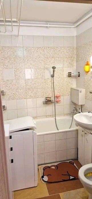 Łazienka z wanną oraz wc.