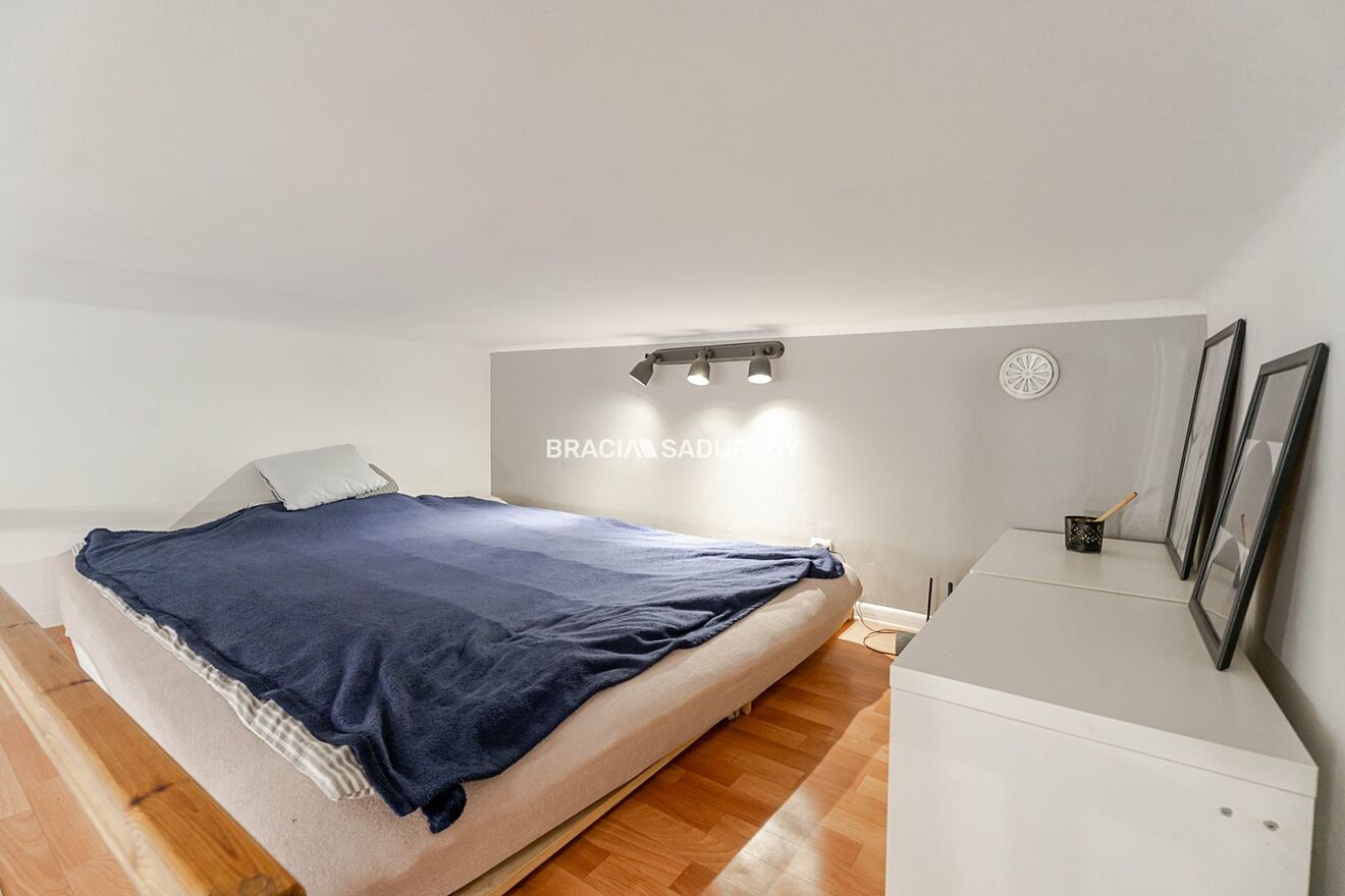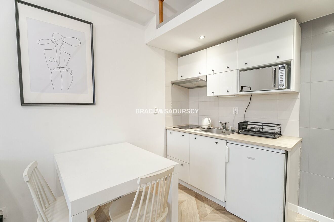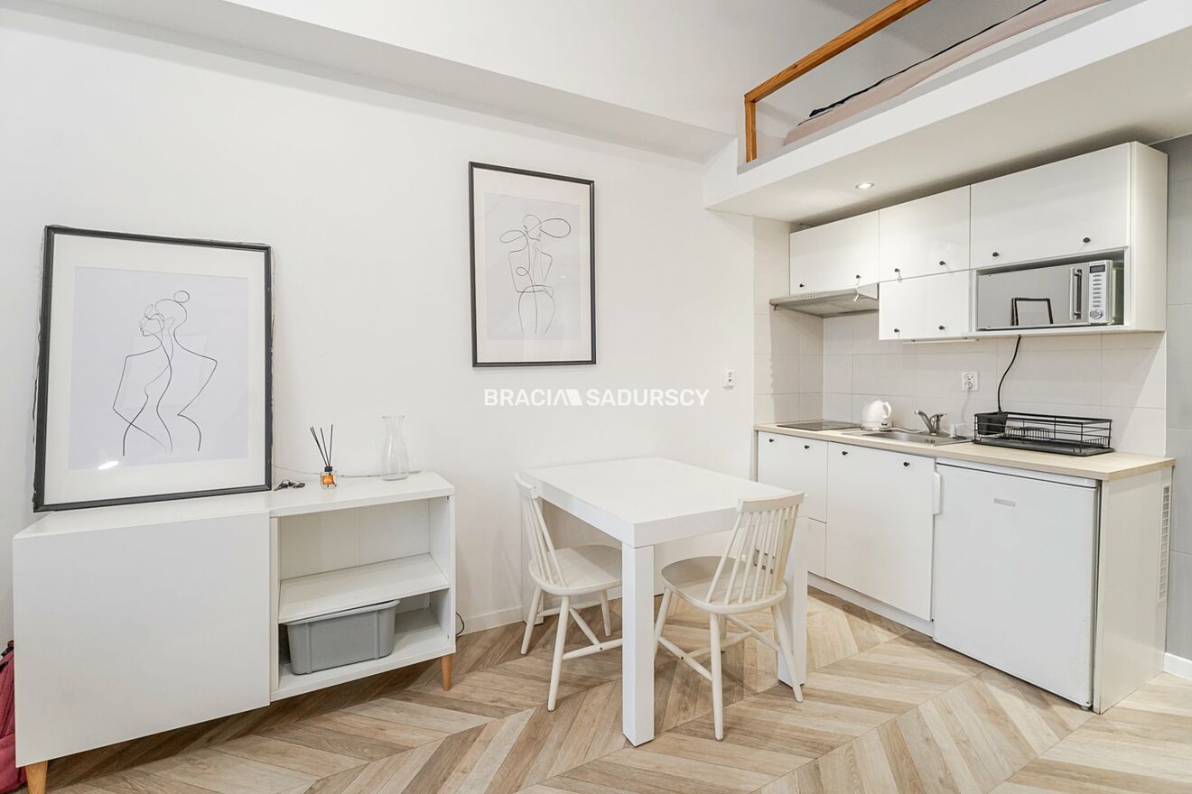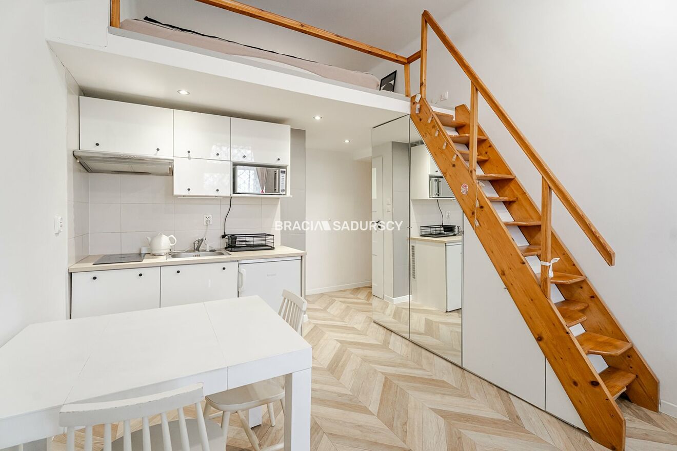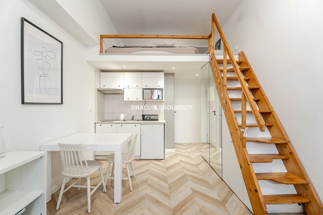 Studio o powierzchni 19 m² z antresolą (6 m²), w pełni wyposażone i gotowe do zamieszkania lub wynajmu.