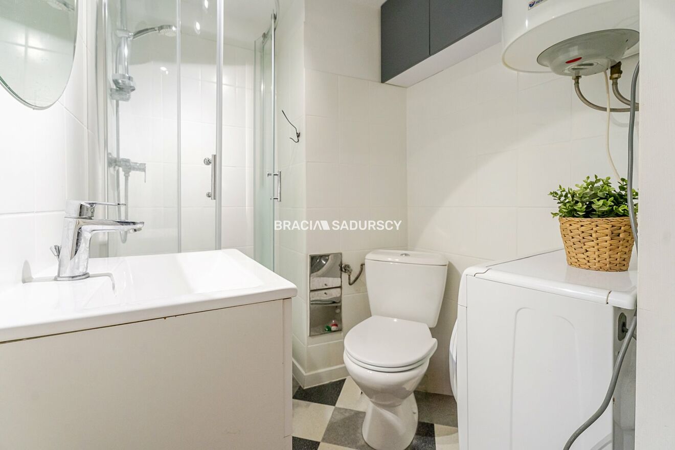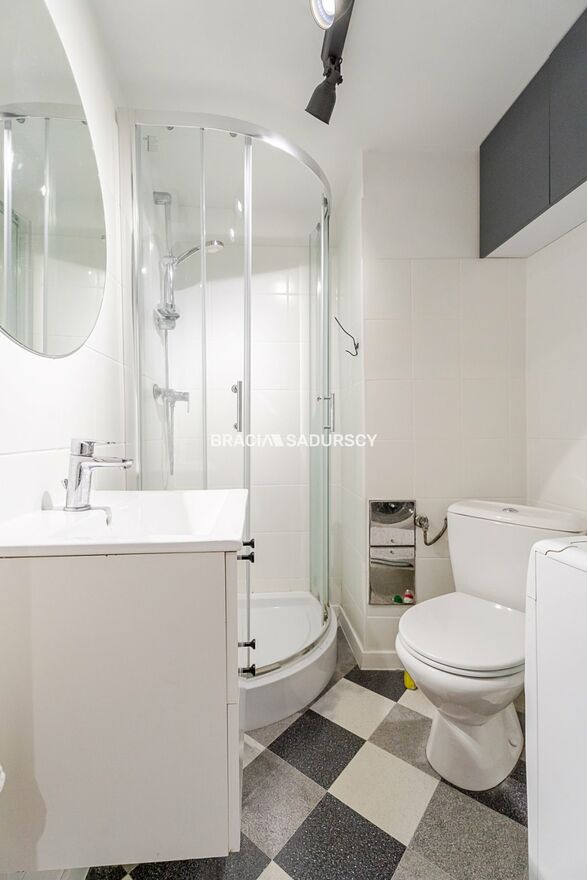 Łazienka: pralka, prysznic, umywalka, WC