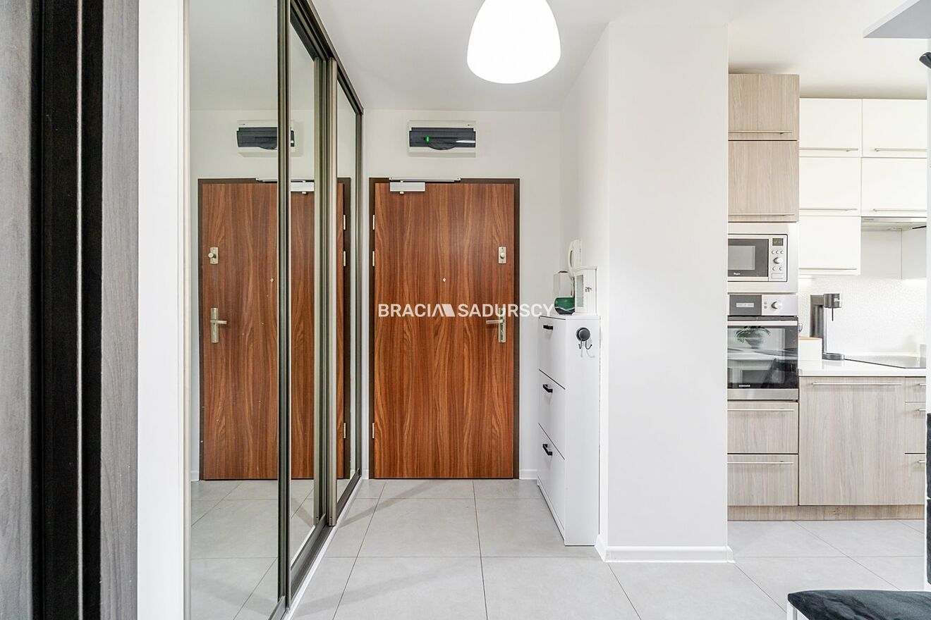 Widokowe, nieprzysłonięte 10-te (z 11) piętro pozwala podziwiać panoramę miasta (w tym Wawel o zachodzie słońca!) i znacznie zwiększa atrakcyjność mieszkania.