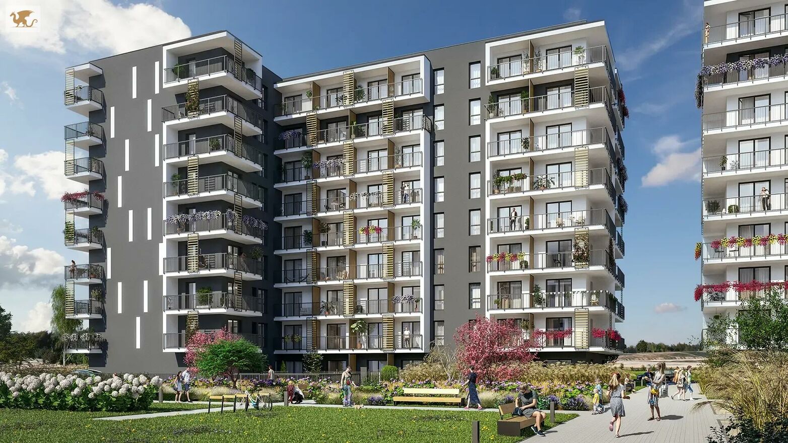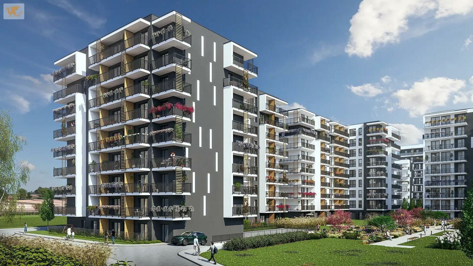 balkony lub ogródki w mieszkaniach komórki lokatorskie wózkownie i rowerownie place zabaw stacje ładowania samochodów elektrycznych lokale usługowe na terenie osiedla