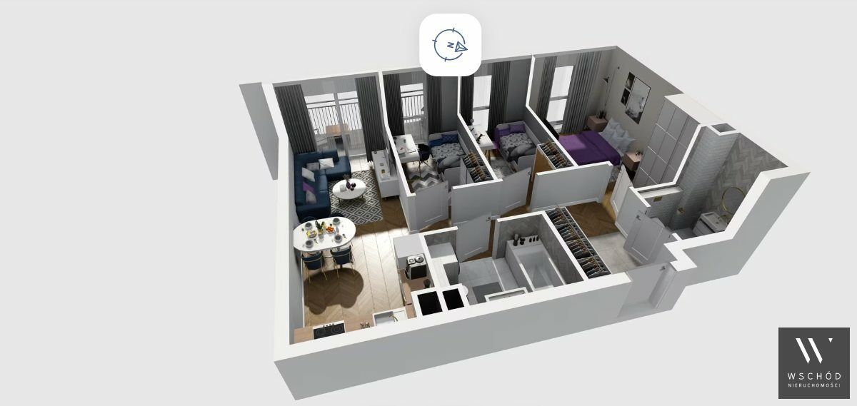 Mieszkanie składające się z salonu z aneksem kuchennym , trzech sypialni, przedpokoju, dwóch łazienek oraz balkonu.