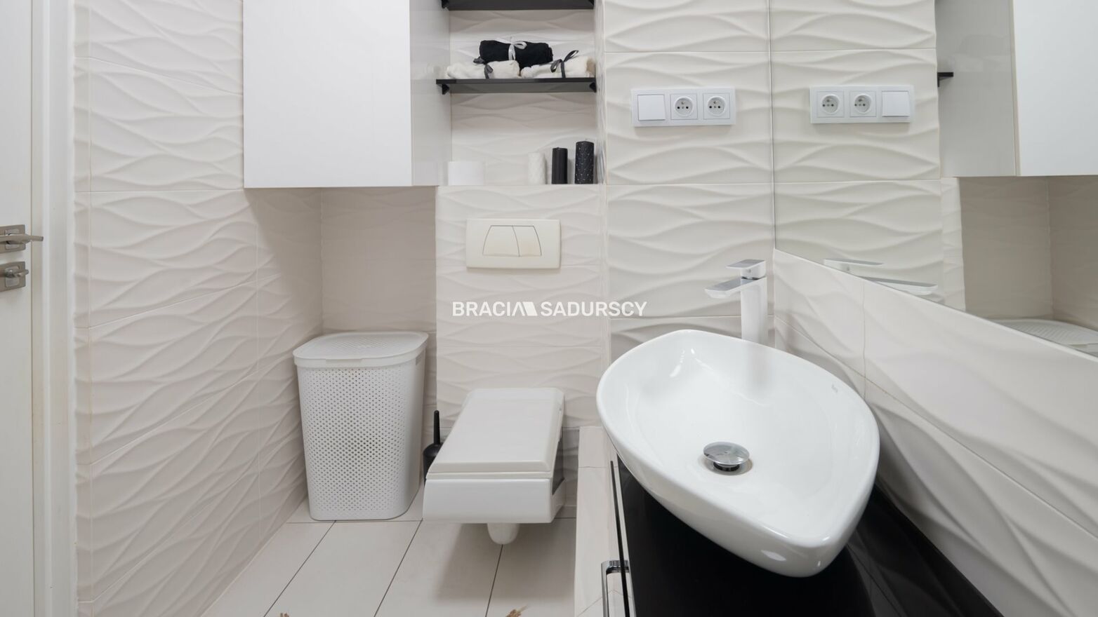Całe mieszkanie wykończone w neutralnych bielach i szarościach, od czasu remontu zamieszkałe 2 lata, dlatego jest czyste i zadbane. Całość wyposażenia pozostaje w cenie mieszkania. Ogrzewanie elektryczne, dzięki dobrej izolacji budynku w mieszkaniu jest bardzo ciepło, brak gazu.